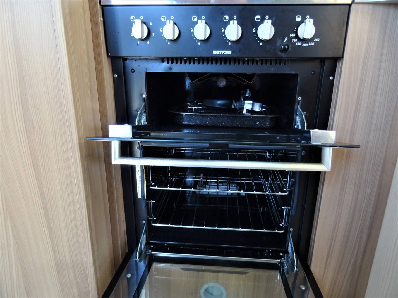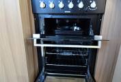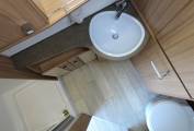 It comes with a well equipped kitchen and spacious rear washroom with full height shower. Sleeping accommodation is in a capacious drop down double bed towards the front above the cab with two further comparatively generous singles as part of the dinette/lounge area.