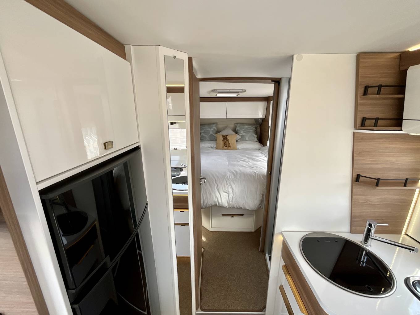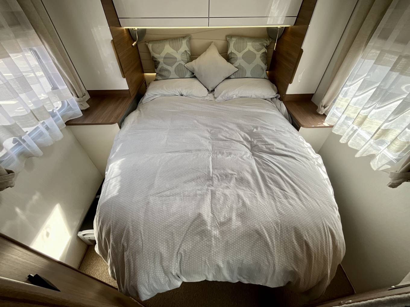 A huge benefit of this stylish model is the rear garage, which can fit anything you might need for your travels with an electric adjustable island bed to increase the space should you need it.