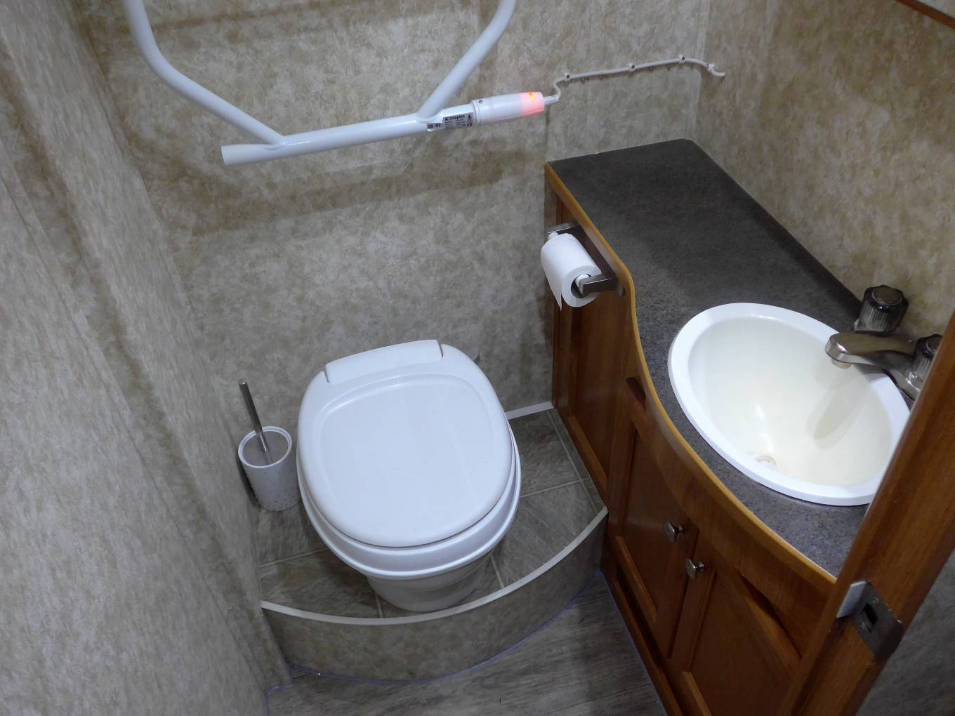 Washroom: Toilet: Thetford marine-style with bulk ‘black’