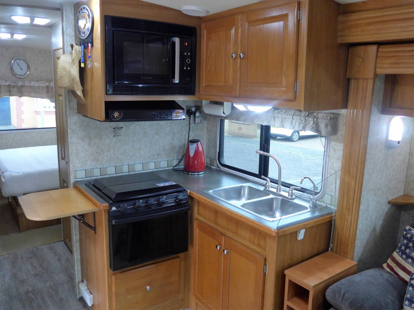dinette also in slide-out providing huge living area. L-shaped kitchen on