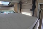 There is an airy and tranquil feel to the motorhome, with skylights and muted tones to the soft furnishings.