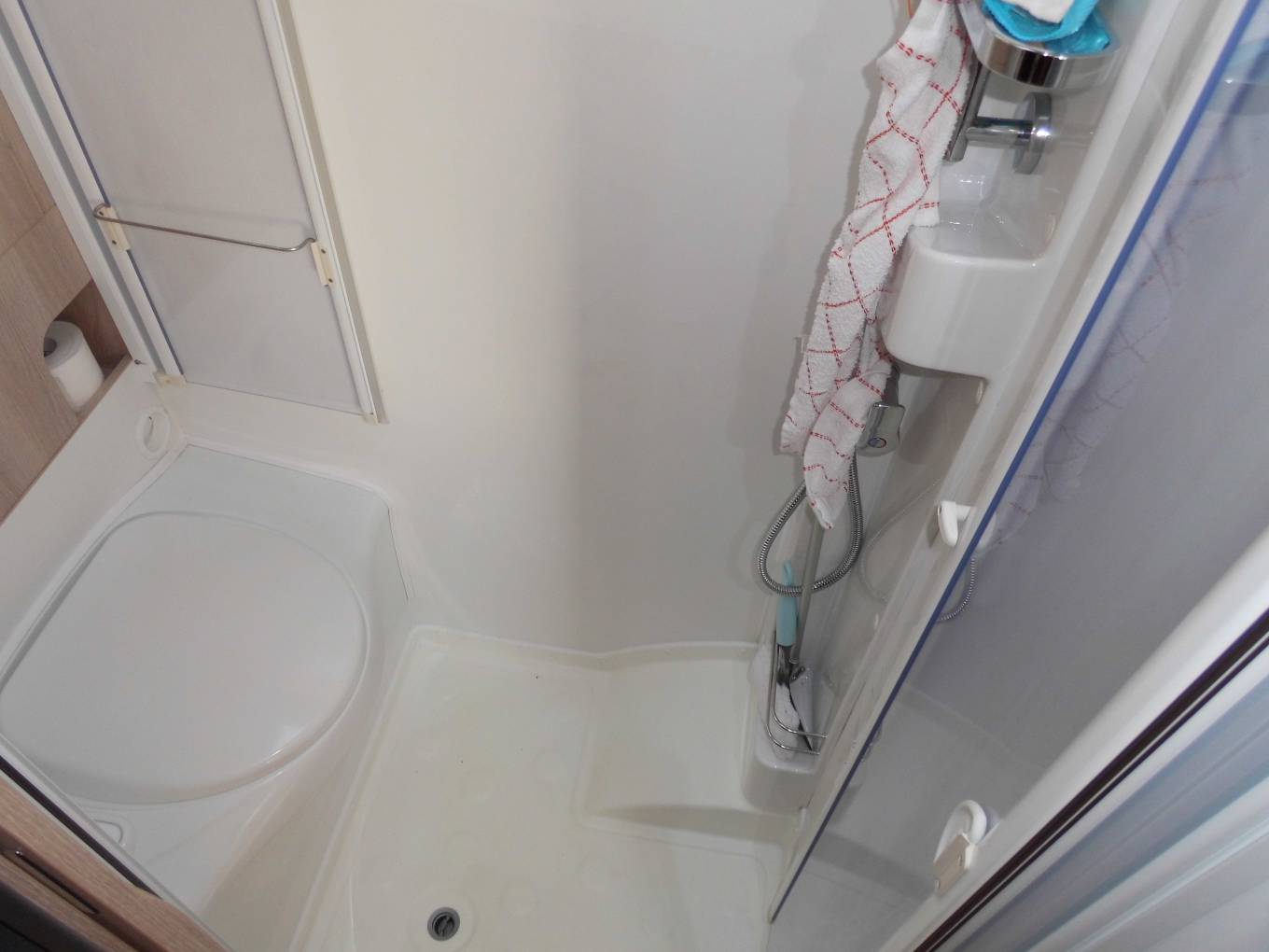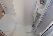 Bathroom has been cleverly designed to create a nice space to shower with fold over shower screen.