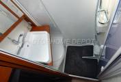 Thetford cassette toilet with electric flush, mirror & storage cabinet.