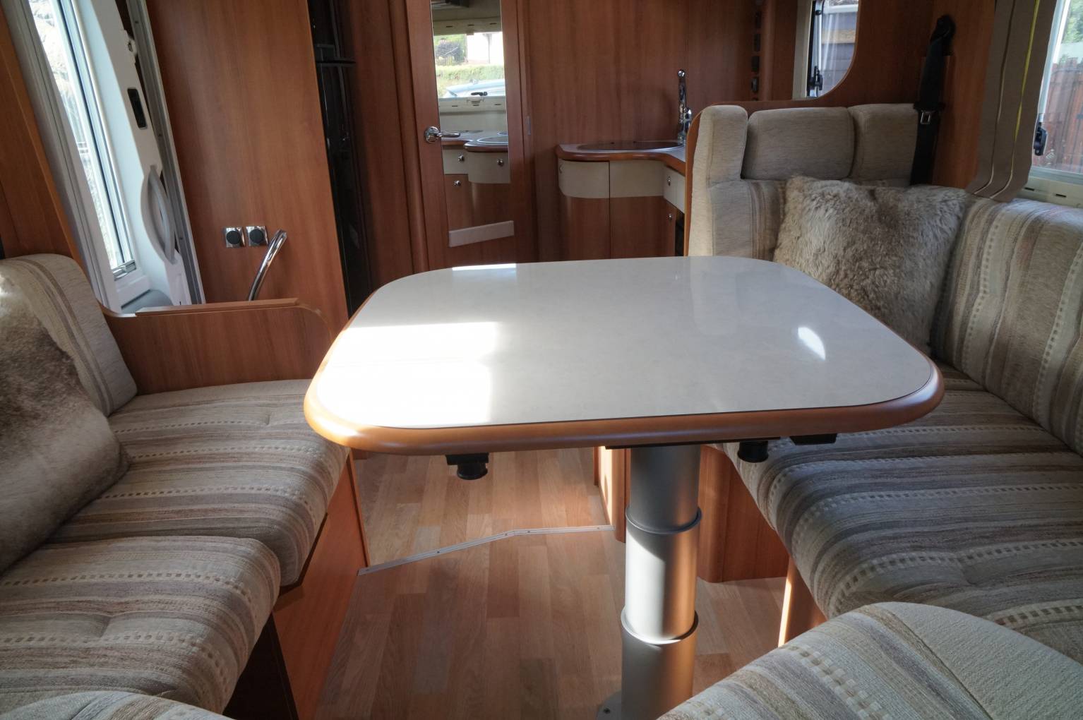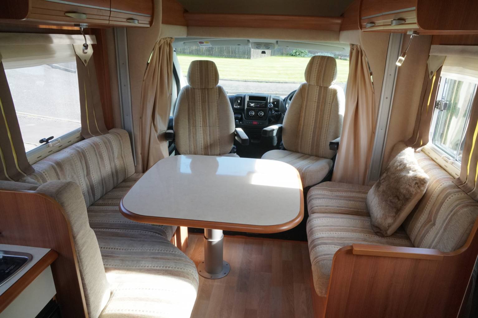 manual gearbox, cab air-conditioning and cruise control. The dining / lounge area has a L-shaped settee