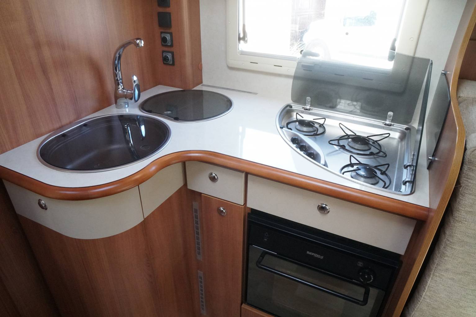 3-burner hob with oven and grill, sink with mixer tap and a large 3-way fridge