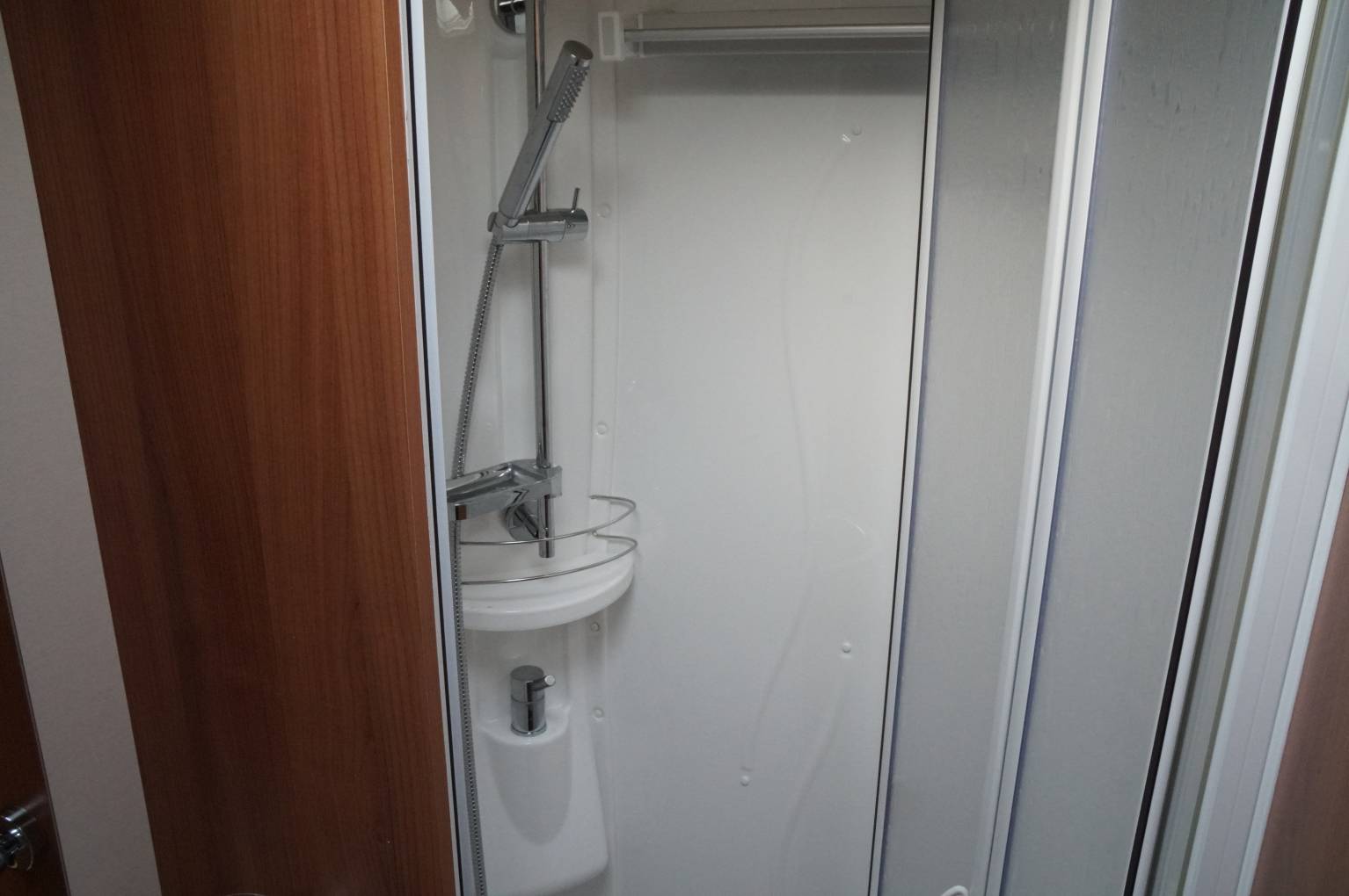 with separate freezer compartment. The well-appointed end washroom area has a Thetford cassette toilet with electric flush, sink with