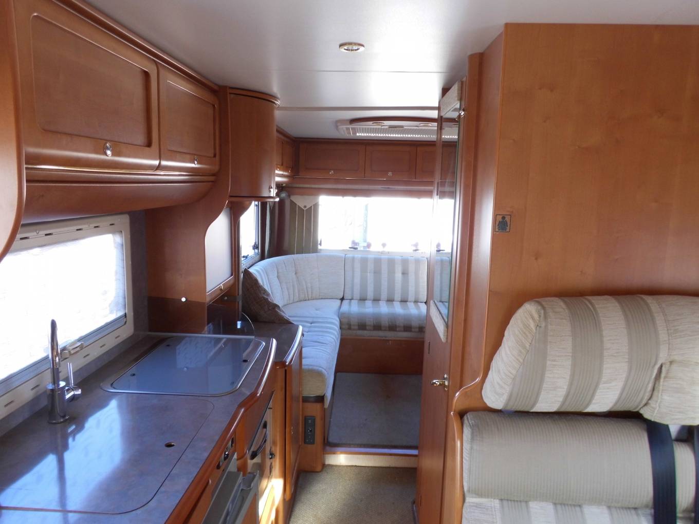 Rapido 7068F 4 berth is a capable touring model with a 2.8 engine it has enougth power for most occasions. Walk through the door and you get the feeling straight away of great build and the quality of materials used. The colour scheme is extremely pleasant and really gives a light and airy feel. This Rapido 7086F has a very rare and unique end "U shaped" lounge, it is rumoured that only 15 of these were ever made, this is probably true!! Also there are 2 belted forward facing travelling seats around a dinette which further adds to its desirability.
