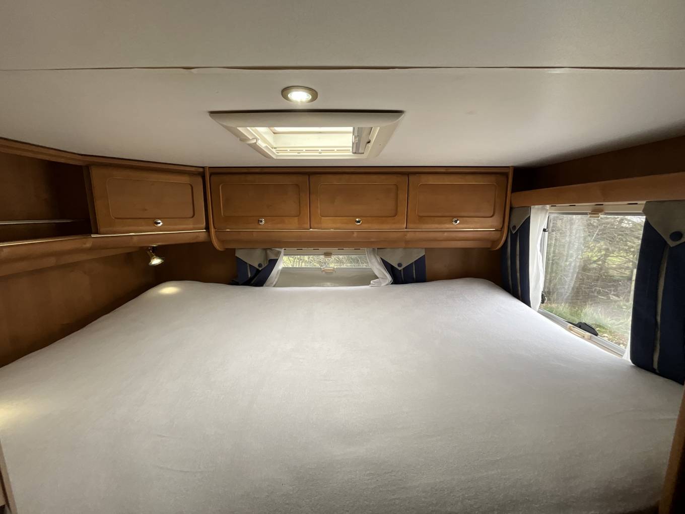 The rear bed has excellent garage storage underneath and can be accessed on both side, with loads more storage available in the overhead lockers. A spacious wardrobe sits between the kitchen and washroom with option of rail or shelves.