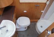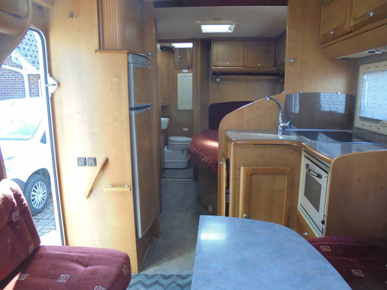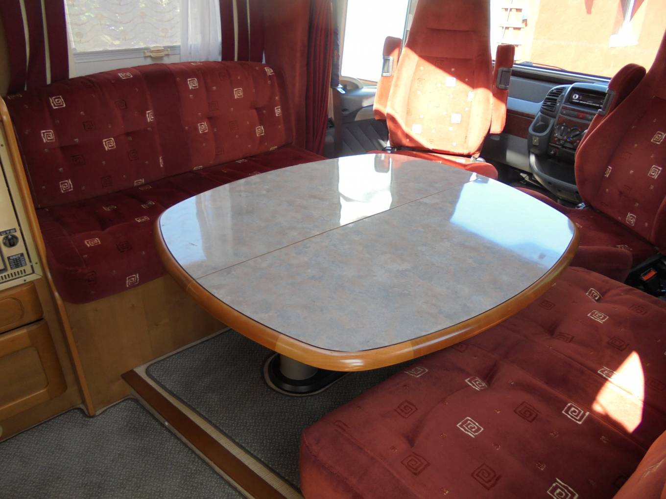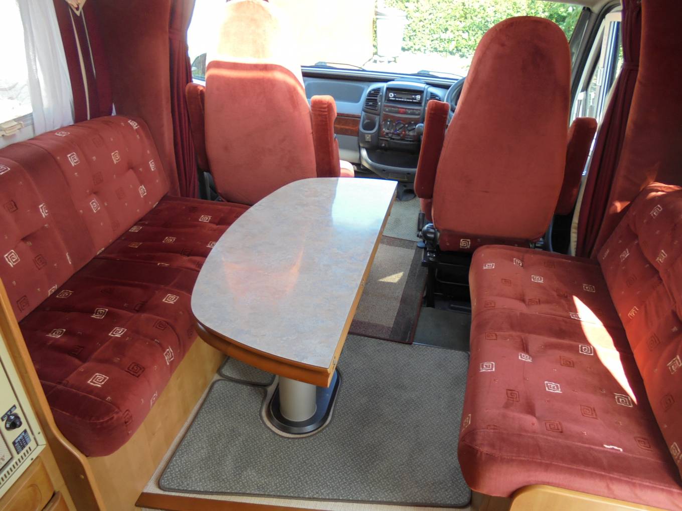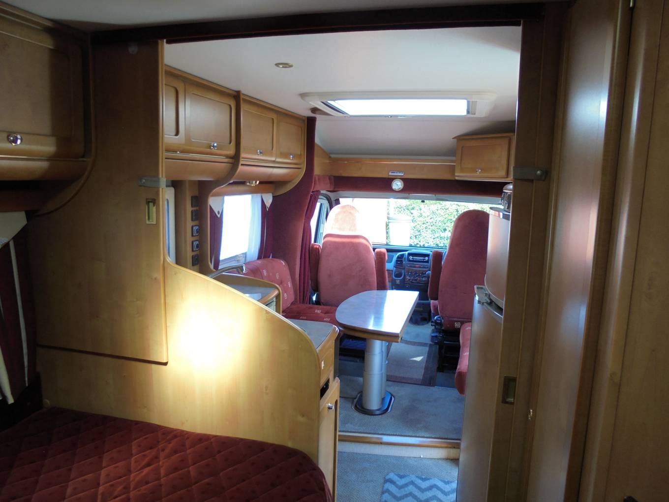 A very attractive and sought-after low line 3/4 berth motorhome, with full width rear washroom behind a French bed on a Fiat 2.8 manual gearbox complete with cruise control and cab Air-Con. The dinette area makes up into a single or small double, but bear in mind onlt 2 seat belts in total.