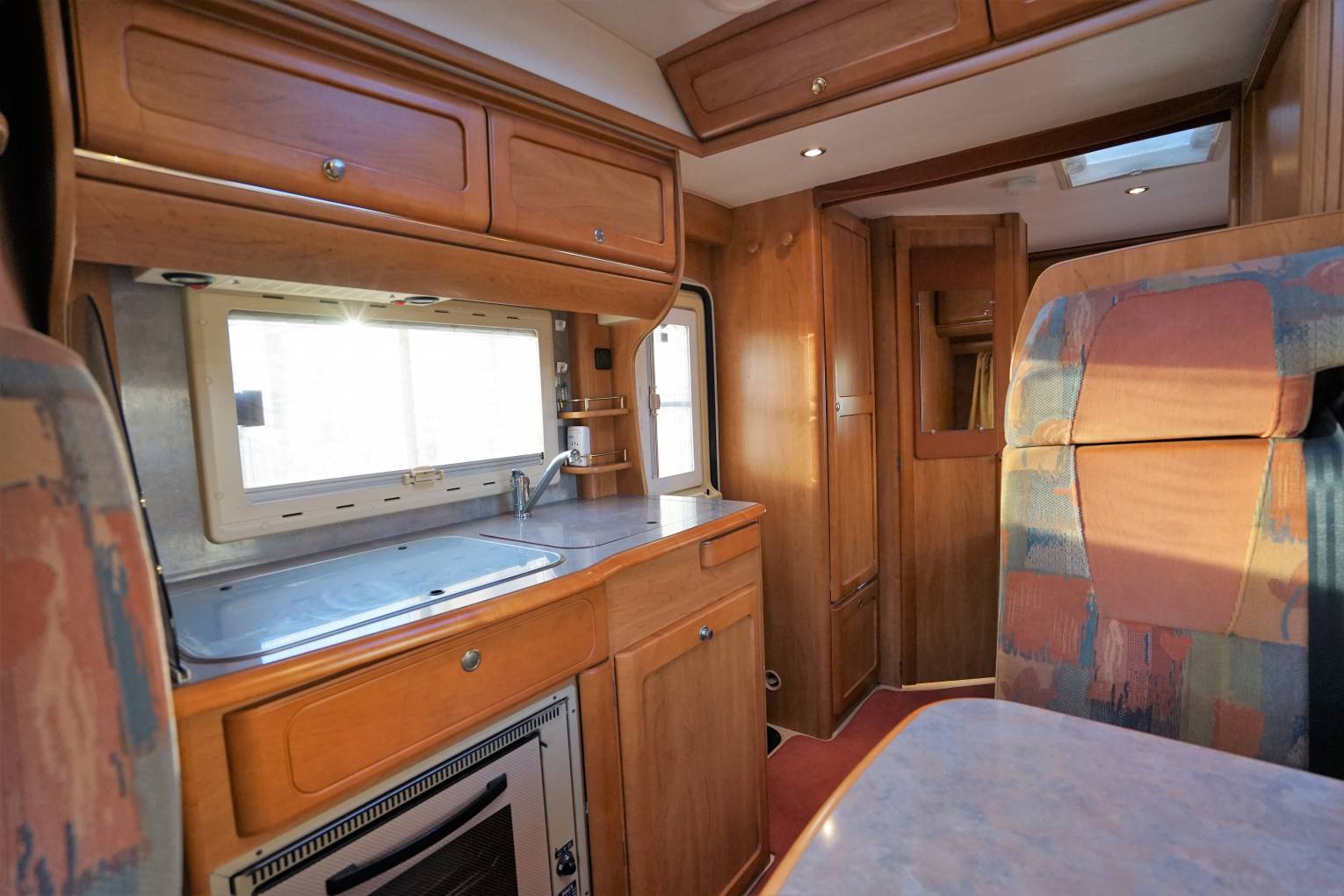 profile coach built motorhome with rear fixed bed. Complete with 4 travelling Seat Belts, Fiamma Awning,