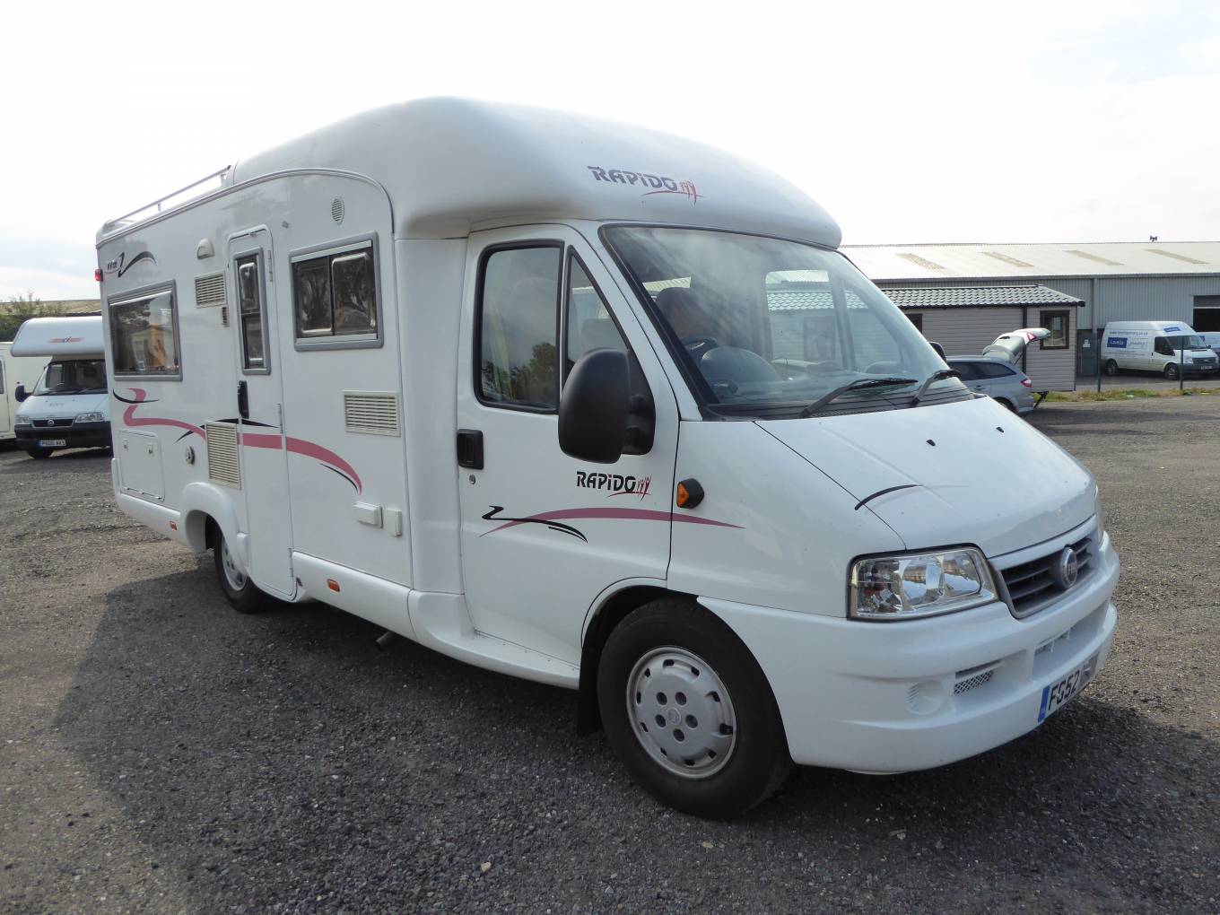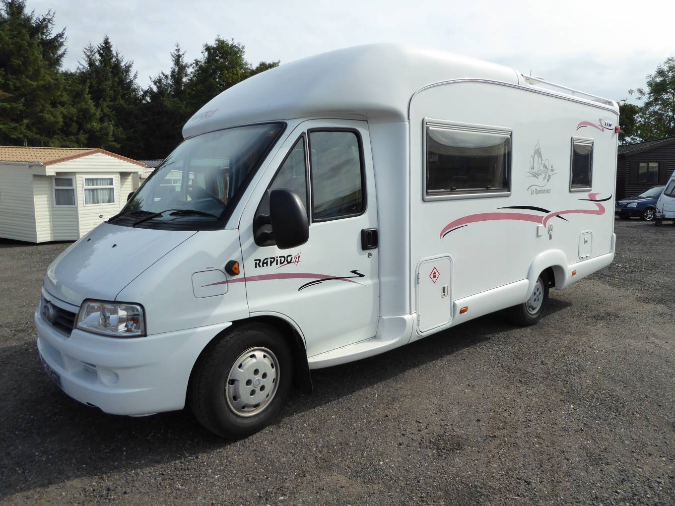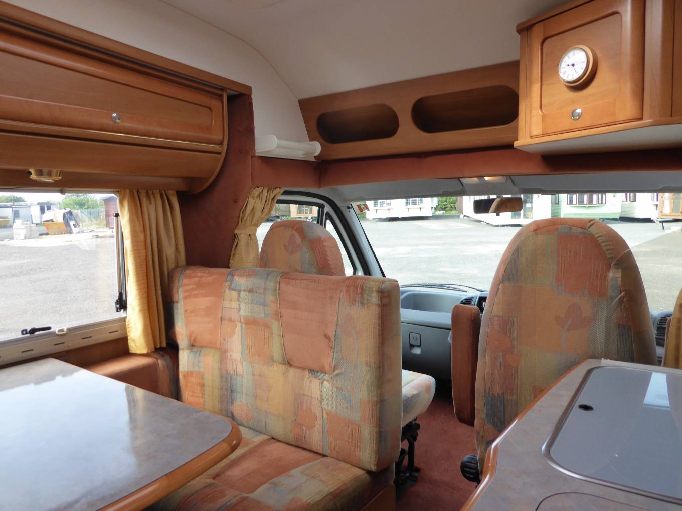 This is an excellent example of a Rapido 773F first registered in February 2003. It has travelled just over 69000 miles and is in immaculate condition. This low profile, coachbuilt motorhome has a host of extras that make it stand out from the rest, cruise control, Sigma immobilizer, cab air conditioning, 120W solar panel,shower and gas BBQ point, full service in August 2018, excellent bodywork and the interior doesn’t fail to impress either. Internally at the rear you will find the fixed double bed with plenty of storage below when the bed is lifted and above in the cupboards. The bathroom contains a sink, toilet and fully enclosed shower cubicle. As you move forward there is a tall fridge with separate freezer which makes this a great touring motorhome. Moving into the kitchen there is a hob with 3 gas burners, sink, plus SMEV oven and grill. In the centre dinette area there are 2 forward facing seats with full seatbelts and a rear facing bench seat opposite. In the cab there is a 5-speed manual gearbox, radio/CD player and very rarely for such a motorhome, cruise control and air conditioning. Heating is provided by either Webasto heating from the diesel engine or Truma water and space heating. It comes with a Sigma immobiliser and has been used to tour round Europe. It comes with a long MOT lasting until March 2019, the cambelt was changed in Dec 2015 at 47172 miles, weighs 3500kg and has the powerful 2800cc engine. There is also a tow bar fitment but isn’t used by the current owner. This is well worth viewing and is in first class condition. Part exchanges are welcomed on this vehicle, for further information and photos please call us on 01423 609985 quoting reference number 16080.