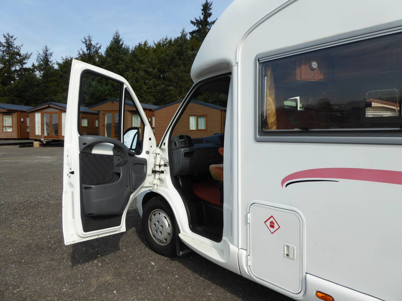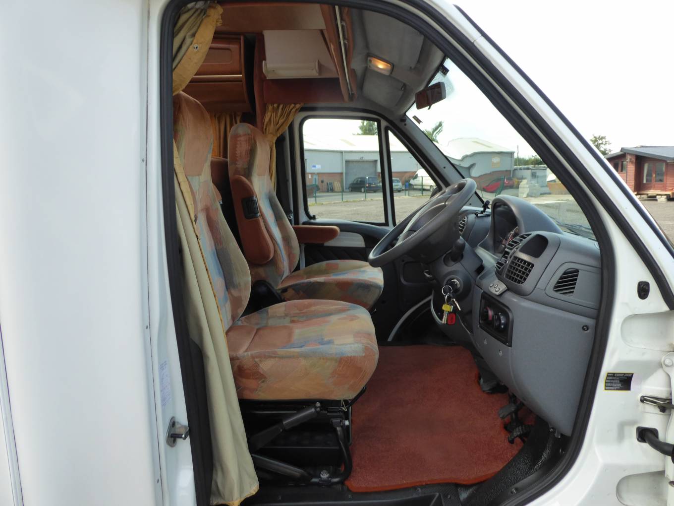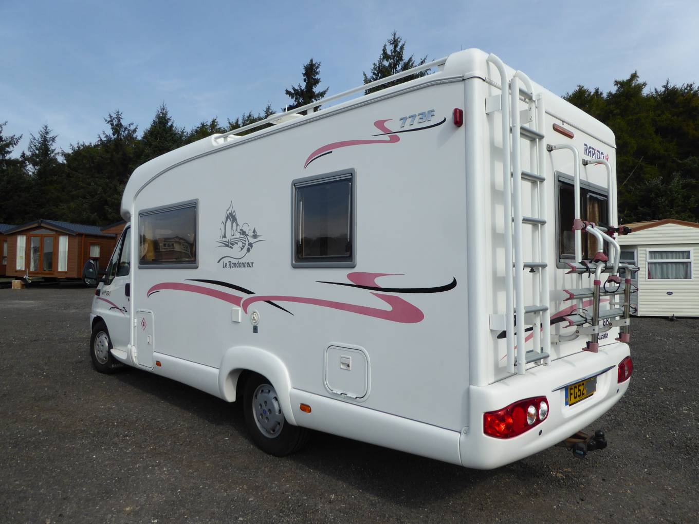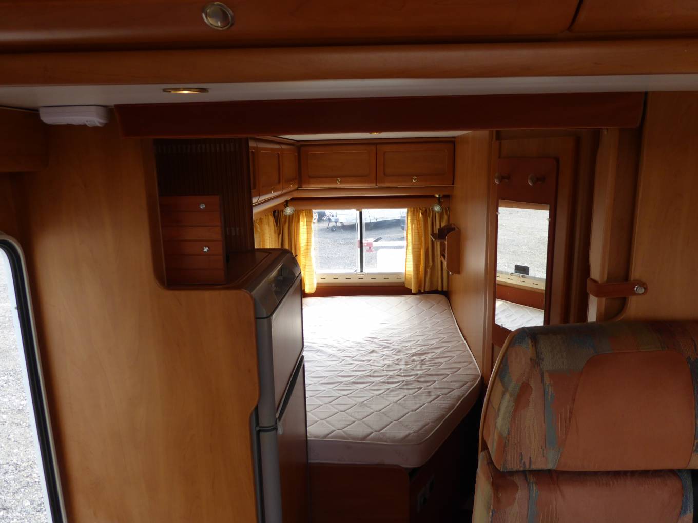 This is an excellent example of a Rapido 773F first registered in February 2003. It has travelled just over 69000 miles and is in immaculate condition. This low profile, coachbuilt motorhome has a host of extras that make it stand out from the rest, cruise control, Sigma immobilizer, cab air conditioning, 120W solar panel,shower and gas BBQ point, full service in August 2018, excellent bodywork and the interior doesn’t fail to impress either. Internally at the rear you will find the fixed double bed with plenty of storage below when the bed is lifted and above in the cupboards. The bathroom contains a sink, toilet and fully enclosed shower cubicle. As you move forward there is a tall fridge with separate freezer which makes this a great touring motorhome. Moving into the kitchen there is a hob with 3 gas burners, sink, plus SMEV oven and grill. In the centre dinette area there are 2 forward facing seats with full seatbelts and a rear facing bench seat opposite. In the cab there is a 5-speed manual gearbox, radio/CD player and very rarely for such a motorhome, cruise control and air conditioning. Heating is provided by either Webasto heating from the diesel engine or Truma water and space heating. It comes with a Sigma immobiliser and has been used to tour round Europe. It comes with a long MOT lasting until March 2019, the cambelt was changed in Dec 2015 at 47172 miles, weighs 3500kg and has the powerful 2800cc engine. There is also a tow bar fitment but isn’t used by the current owner. This is well worth viewing and is in first class condition. Part exchanges are welcomed on this vehicle, for further information and photos please call us on 01423 609985 quoting reference number 16080.