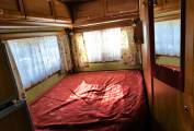 The double bed is on the offside of the vehicle. A wind out awning, an external shower (hoses included) and the habitation door are on the same side, too.