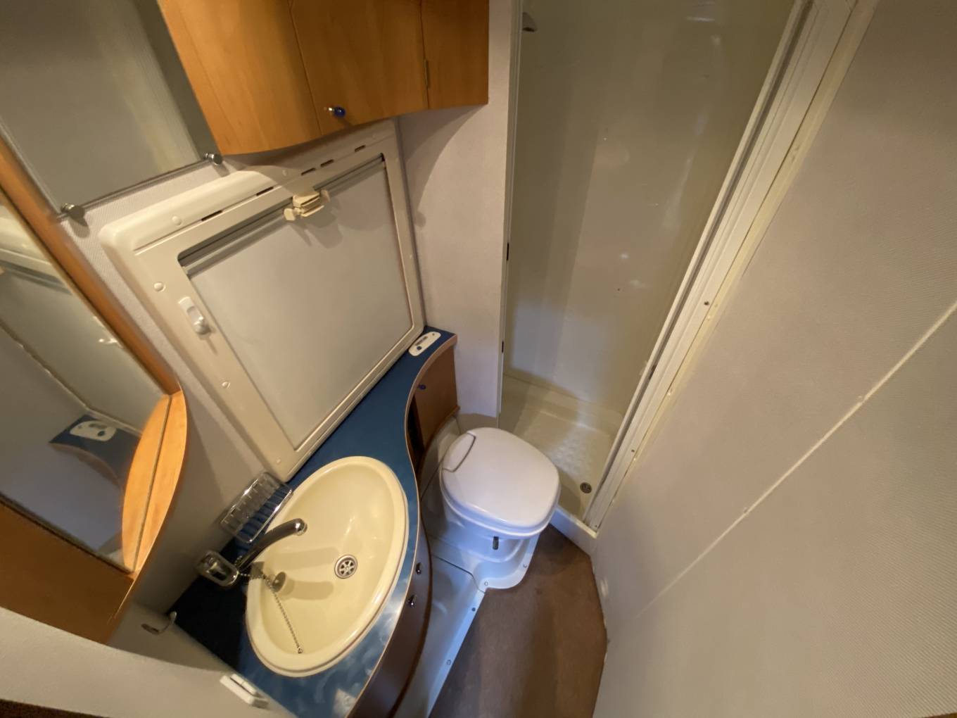 In the driver’s side corner is the Bathroom where you will find a Thetford cassette toilet, a Wash Handbasin and a Separate Shower.
