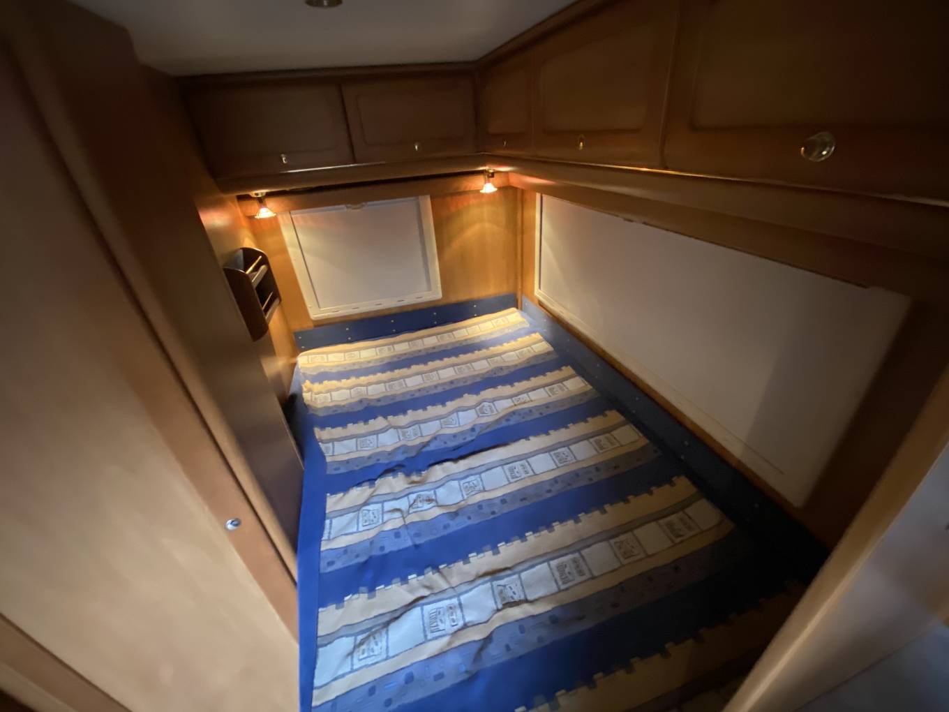 Rear of the kitchen in the corner is the main double bed with loads of storage below, also accessible from the outside.
