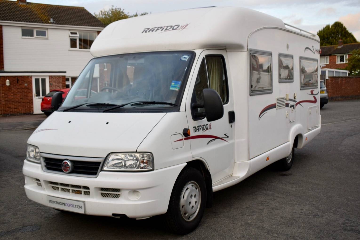 This Rapido Low Profile Motorhome is based on a 2.8 litre diesel engined Fiat Ducato has four berths, two seatbelts is 6.74m long and has a gross weight of 3850kg.