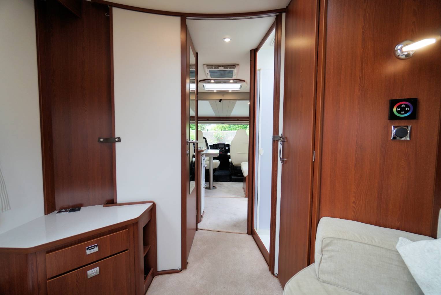 Other benefits include, habitation air-con, motorhome wi-fi system, Truma blown-air heating and hot water systems, removeable carpets throughout, double glazing with blinds and flyscreens, electric entrance step, solar panel with split charger, external BBQ point, Gas-it LPG system with two bottles, fully winterised with double floor space with inboard fresh water tank and an insulated waste water tank, large rear (heated) full-width locker with outside hot / cold shower point, full-width heated locker space suitable for skies / snow boards etc, Cat 6 Tracker, Cat 1 alarm complete with internal proximity sensors and alarms on cab door, habitation door and the two rear locker doors. A C1 licence is required as the max revenue weight is 3700kg. It could be downplated to 3500kg if required.