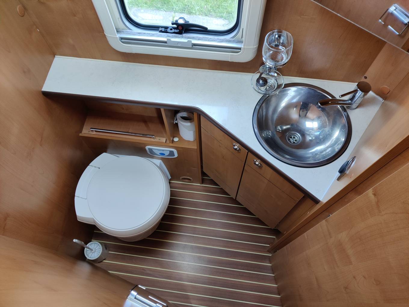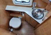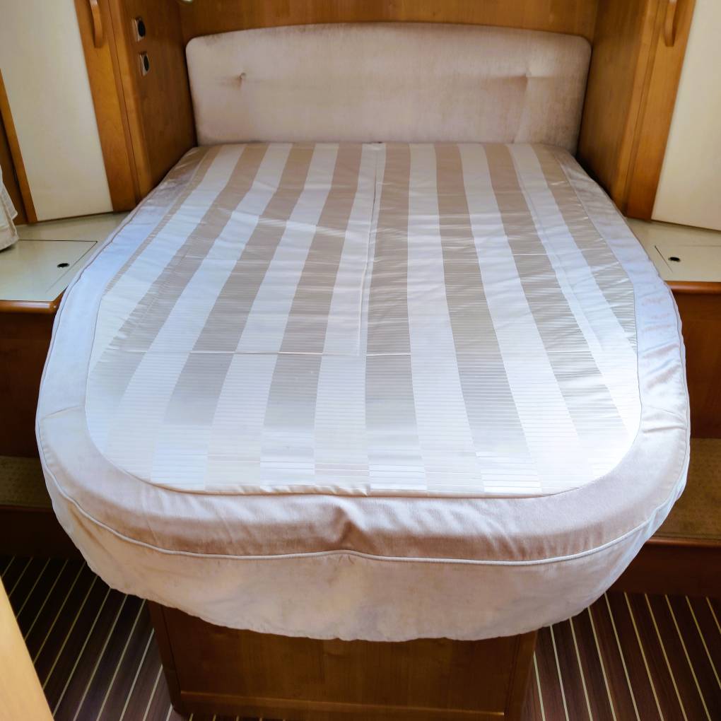 Lovely cabinetry and soft furnishings, spacious and spotless pull down bed over cab section is spacious, to complement the lovely island bed to the rear.