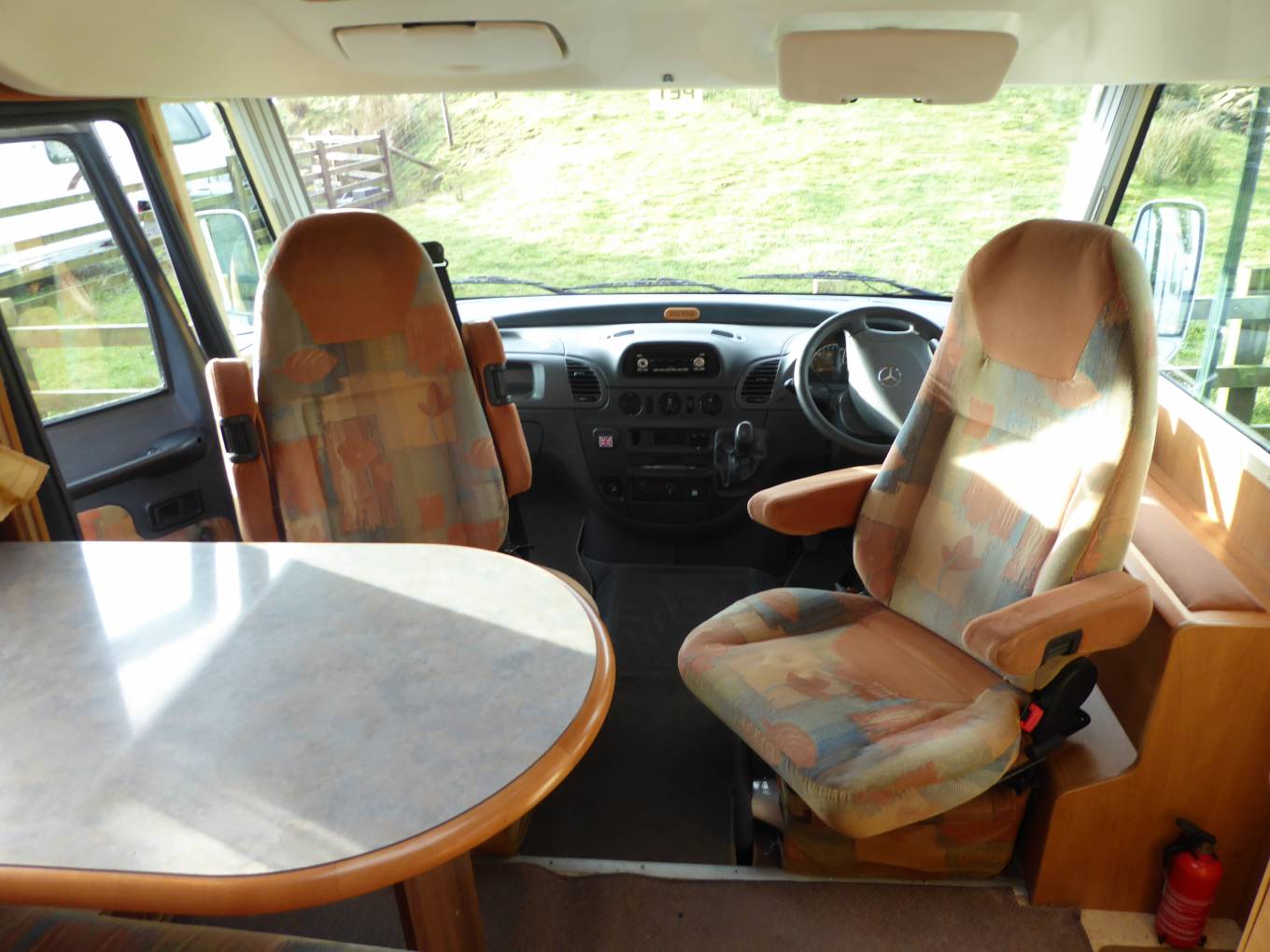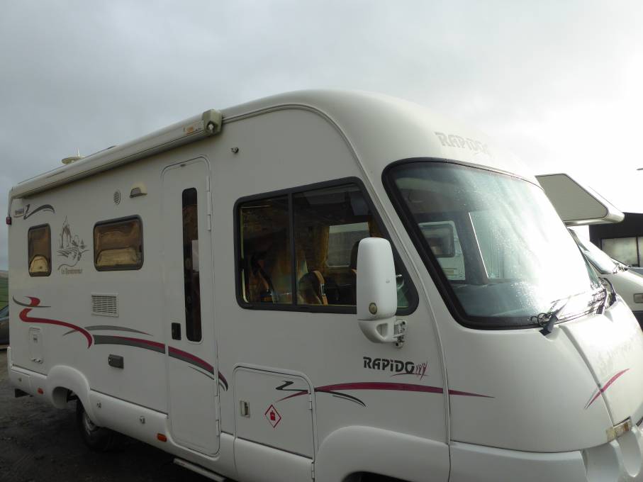 This is a Rapido Le Randonneur 942M first registered in June 2003 with approximately 50,000 miles on the clock. It weighs 3500kgs, is approximately 6.26m in length, this A-Class motorhome is built on a Mercedes Sprinter 316 chassis. As always with an A class the view from the front is outstanding and you can enjoy this from the bed that comes down easily above the two front seats. There is a rear fixed bed at the back that has plenty of storage space underneath. The washroom has a toilet, sink and a fully enclosed shower cubicle. There is a centre dinette with two forward facing seats with full seatbelts and both front seats swivel to form a convivial area for entertainment or relaxing. In the kitchen there is a SMEV oven and grill with 3 gas burners, extractor fan and opposite 140 litre Dometic fridge with freezer above. Other useful features of this motorhome are the external shower point, solar panel, satellite TV system, awning, Sigma immobiliser, diesel heating, tow bar, reversing camera and radio/CD player. This is in good order throughout and has the unmistakeable A-Class look and feel and view from the front. This motorhome should be seen at the earliest opportunity in Skipton, North Yorkshire. Please note this vehicle is owned by a dealer, as a potential buyer, should you purchase this vehicle, if the vehicle is not as described, of satisfactory quality or fit for purpose you may have a claim under the Consumer Rights Act 2015. Part Exchanges welcomed on this vehicle, for further information and photos please call us on 01423 609985 quoting Reference 86994