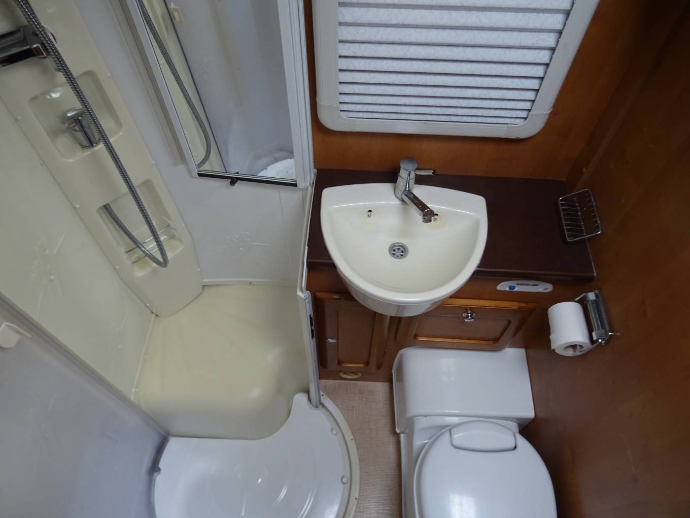 integral cab blinds to the windscreen and side windows. The habitation door is on the off-side behind