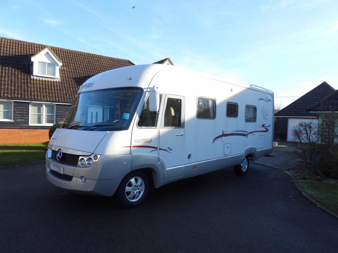 3 Berth Rapido 965M motorhome, built on a Mercedes chassis with a 3-litre diesel engine and automatic gearbox offers luxury motor homing. It has twin rear single beds and a rear washroom and is presented in good condition throughout. This is a 4100 KG motorhome so a C1 category licence is required..