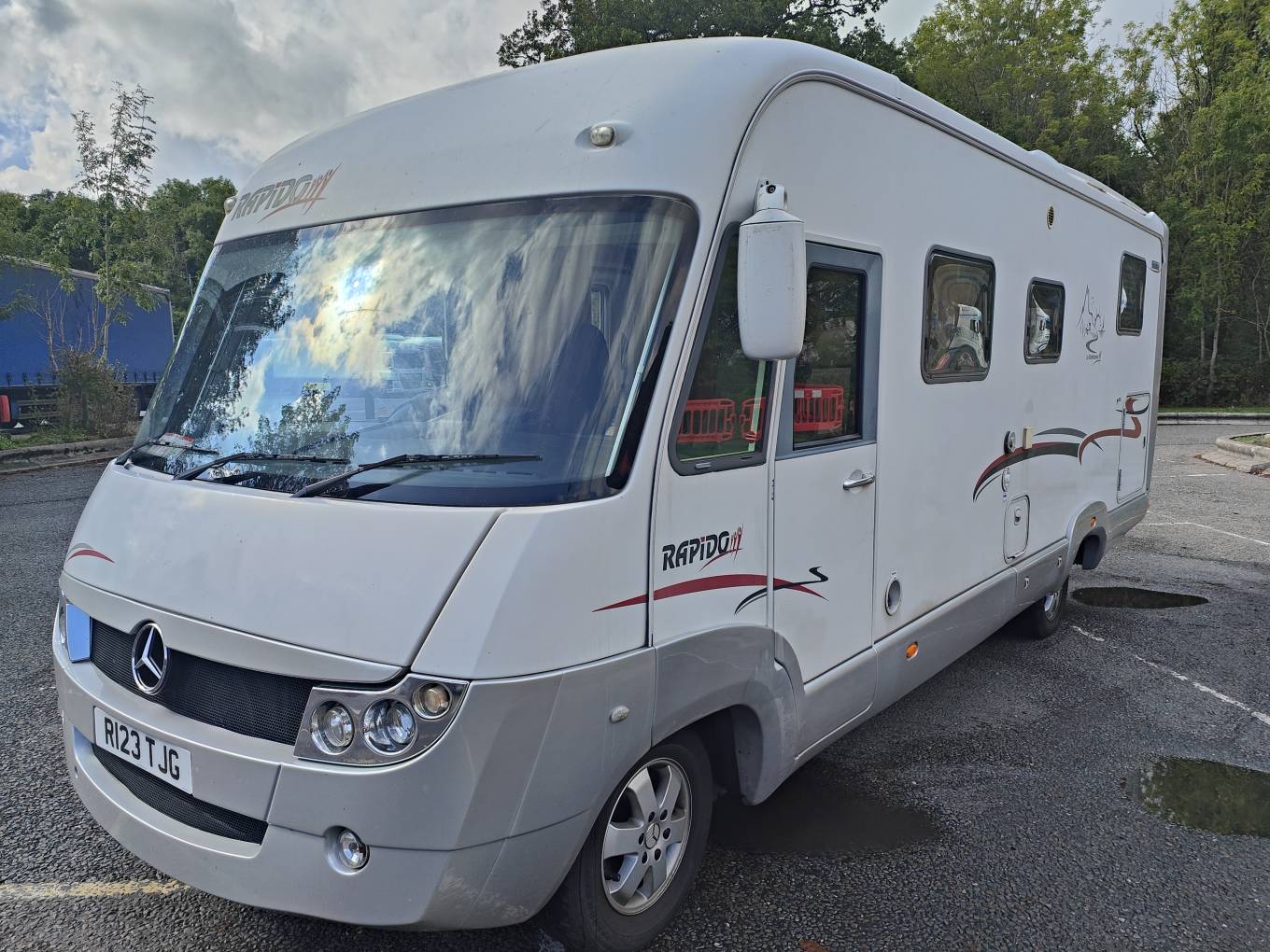 Simply outstanding. This is a highly desirable Rapido 966M based on the Mercedes chassis cab with the V6 3.0 diesel with the excellent Sprintshift automatic gearbox. This 4 berth, 4 seatbelt motorhome has the twin rear single beds with garage underneath and a drop down double above the cab. With a centre bathroom with separate shower and an excellent kitchen with separate fridge freezer and oven, this top of the range A class motorhome cannot be beaten. This motorhome has covered 97k miles mostly going to Spain and back and although this is slightly higher than average, it is barely run in for this powerful engine. You cannot beat a Mercedes. To include a 5.0 metre awning, solar panel, alloy wheels and leather seats. Based in Kent.