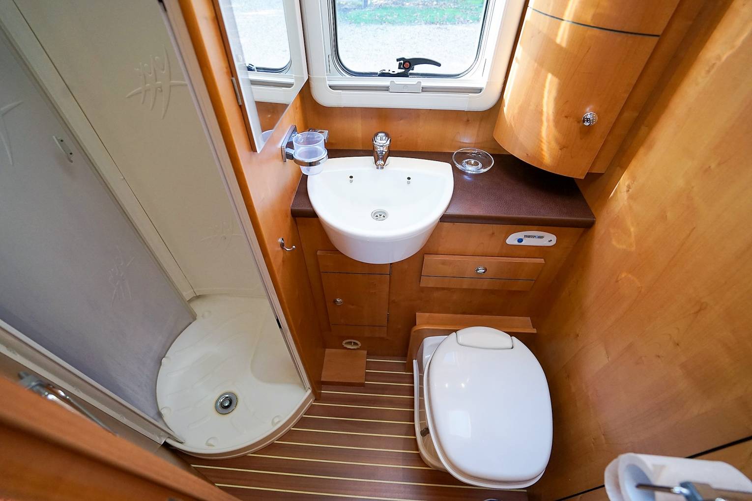 a separate shower enclosure, washbasin and Thetford Cassette Toilet.