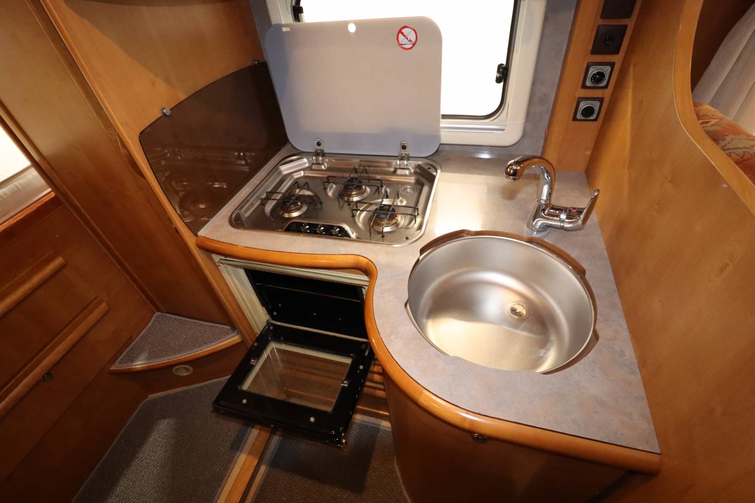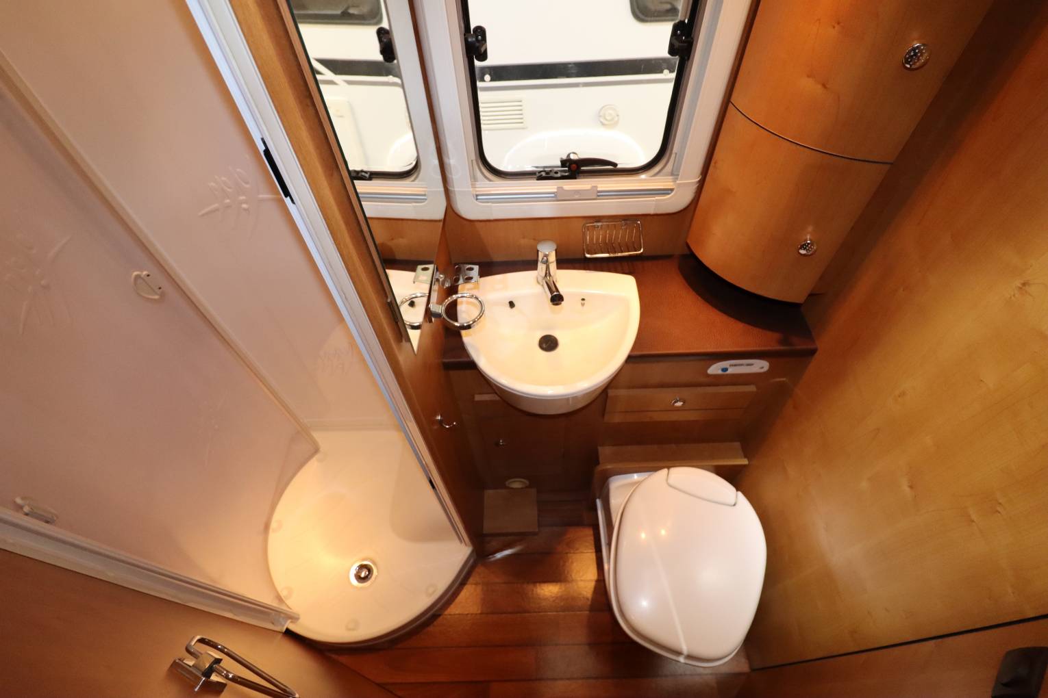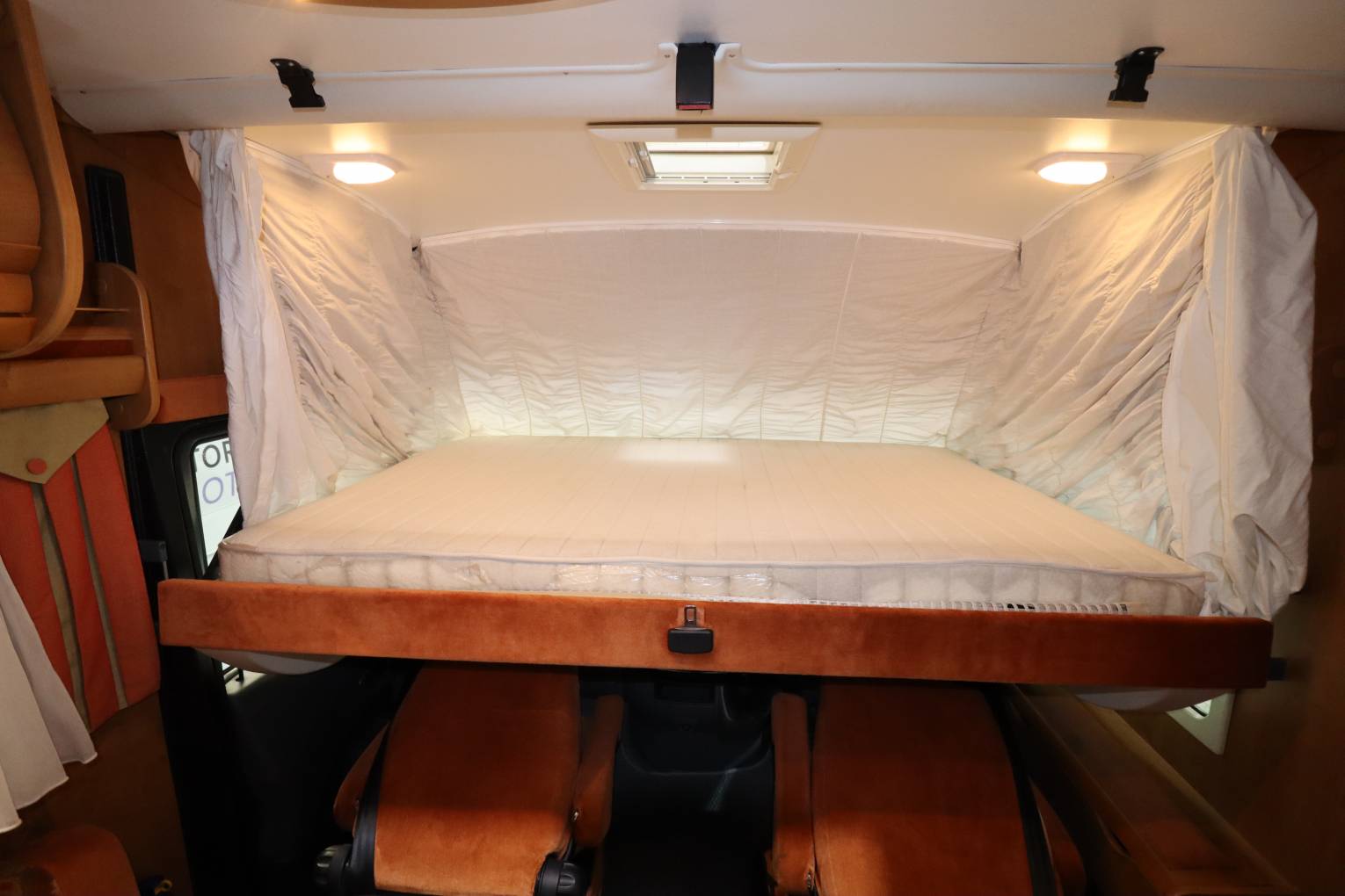 A Luxury Right Hand Drive Rapido Mercedes with four travelling seats, fixed bed and Garage. A Large drop down bed is at the front, central lounge area with 2 extra seat belts. The kitchen is central with large fridge/freezer, oven, grill, hob and sink. The washroom is central with a separate shower. A large fixed rear bed is above the garage.