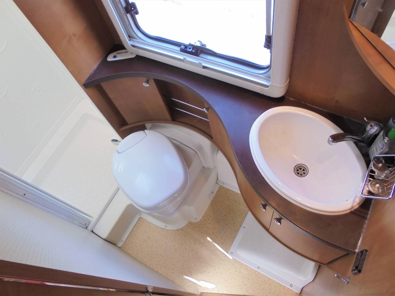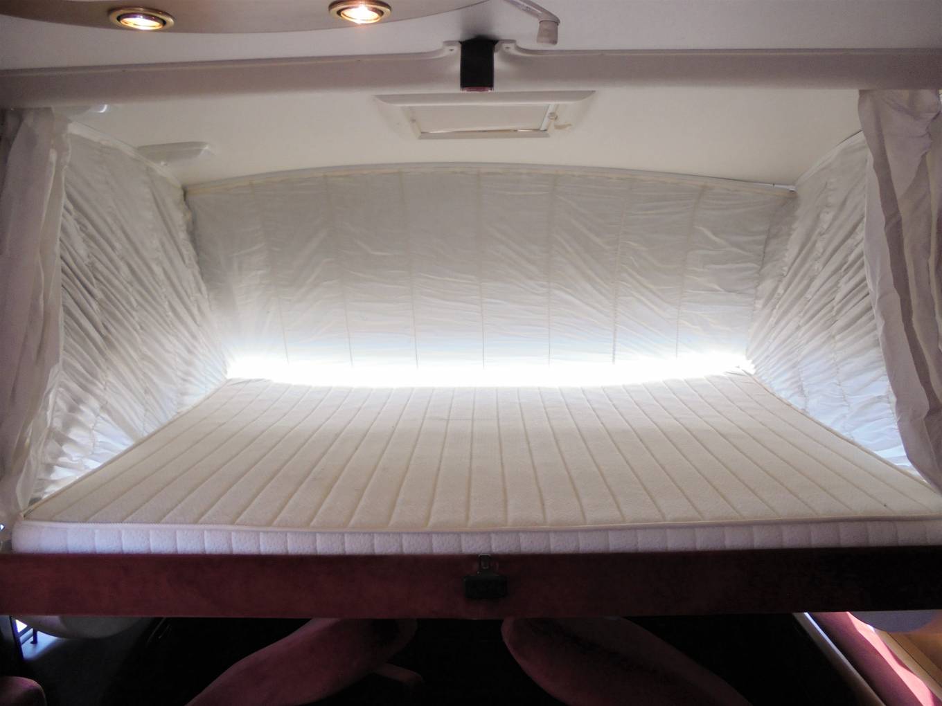 pull down over-cab double bed, central kitchen, rear washroom and fixed French bed