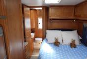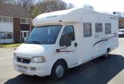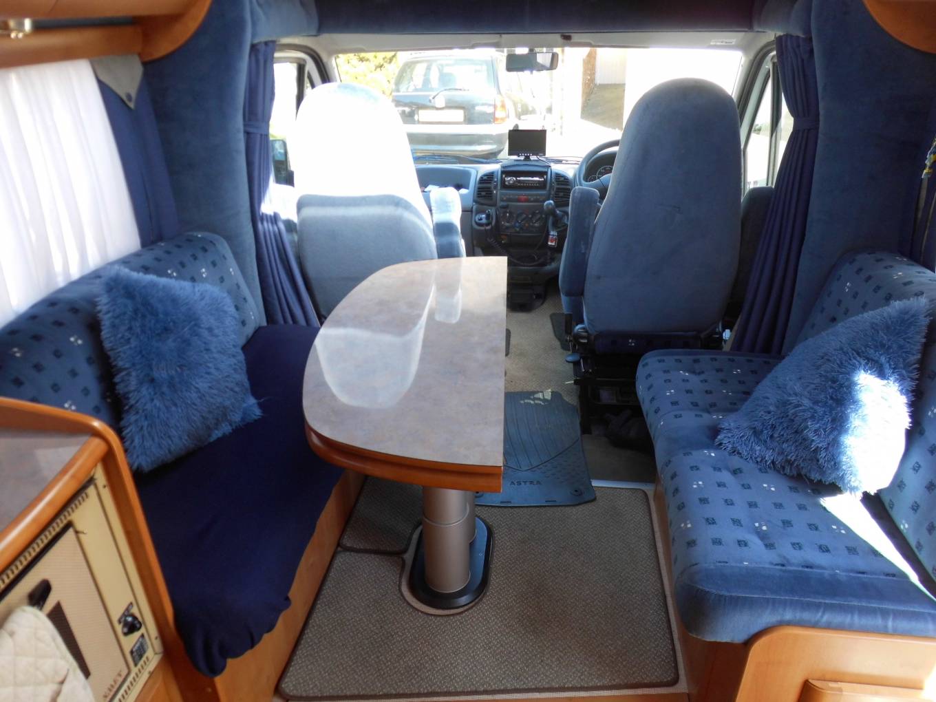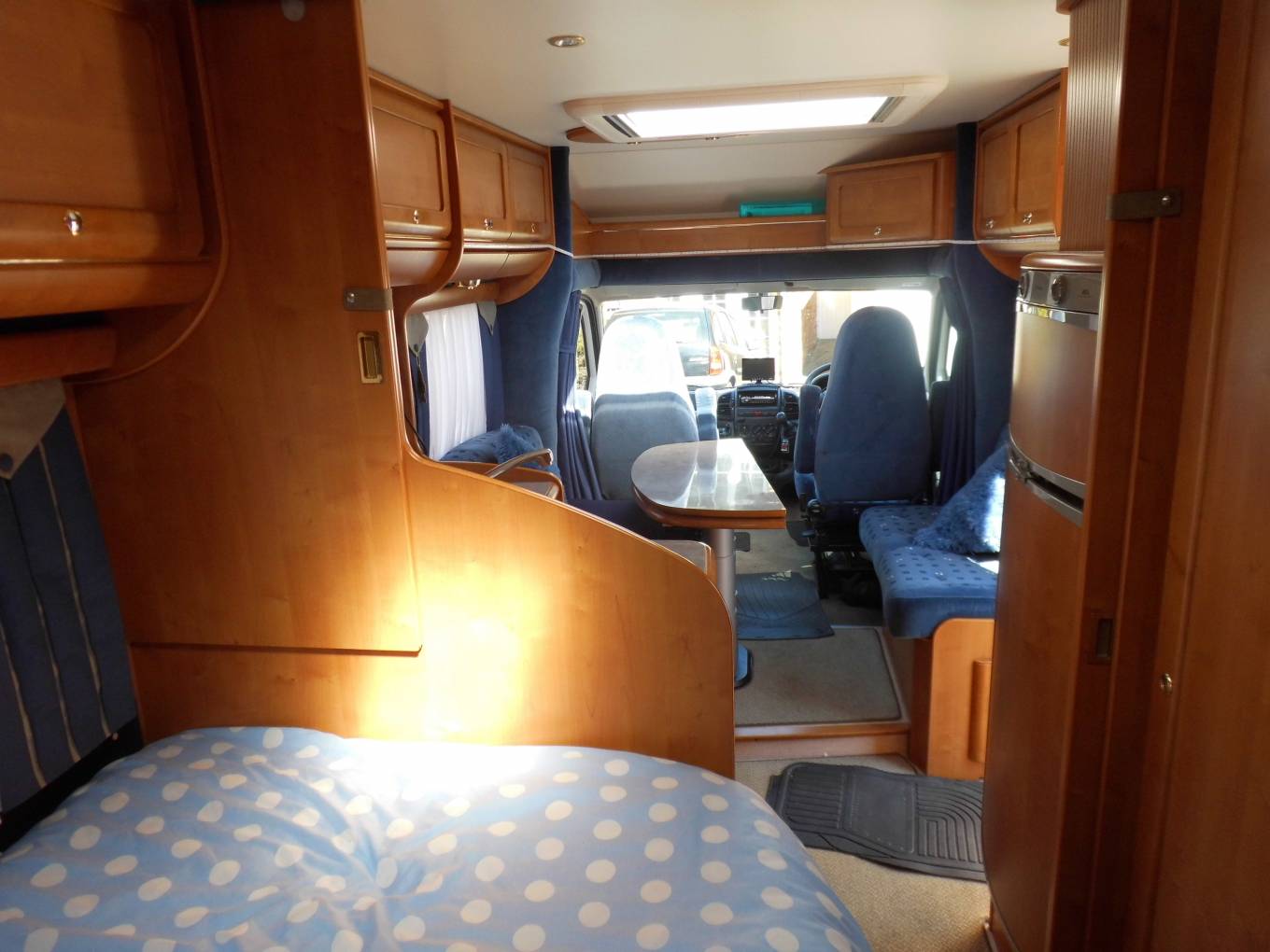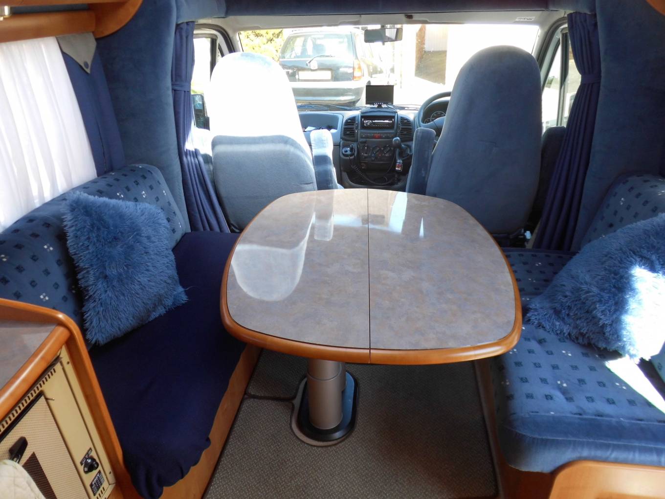 A SIMPLY STUNNING MOTORHOME IN EXCEPTIONAL CONDITION. This lovely motorhome has a very pleasing layout that's easy on the eye and the rich blue upholstery gives it a very stylish finish. At the rear is the bathroom which has a separate shower, sink and toilet. Moving forwards there is a large fixed bed, so no need for the daily chore of bed making with this motorhome. The bedroom area has plenty of storage space and there is a full length cupboard to the right of the bed. Moving on from the bedroom you come to the well designed kitchen which has a Smev oven and grill, 3 gas burners, sink and tap and a fridge freezer. There is plenty of storage space for utensils and ingredients both above and below the kitchen worktop. The lounge has 2 side sofas which sleep 2 singles or it can be made up in to a good size double bed. There is also a generous dining table for eating meals and both the front seats swivel which is perfect when you are entertaining guests or have 4 people onboard. This lovely motorhome is fitted with a reversing camera, a satellite system, and the seller has 2 mobile solar panels available to buy as well. Built on the well renowned Fiat Ducato chassis, this motorhome has a powerful 2.8 litre diesel engine. It has an MOT until April 5th 2019 and has only covered 26640 miles. I CAN OFFER THE BUYER FREE 14 DAY DRIVE AWAY INSURANCE WITH THIS MOTORHOME. For more details or to see a more extensive file of photographs please call me on 07535 155674.