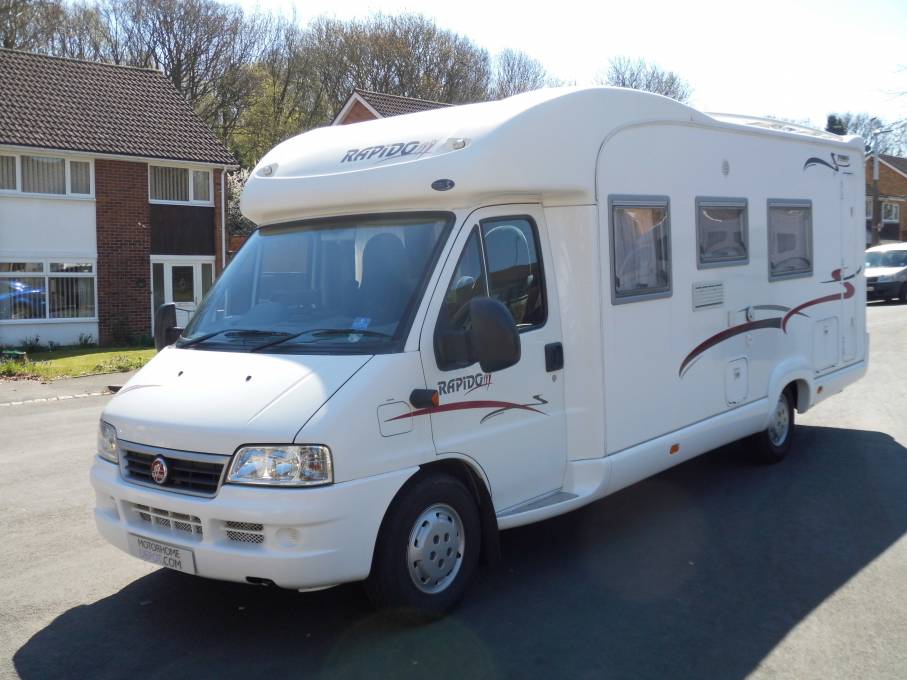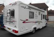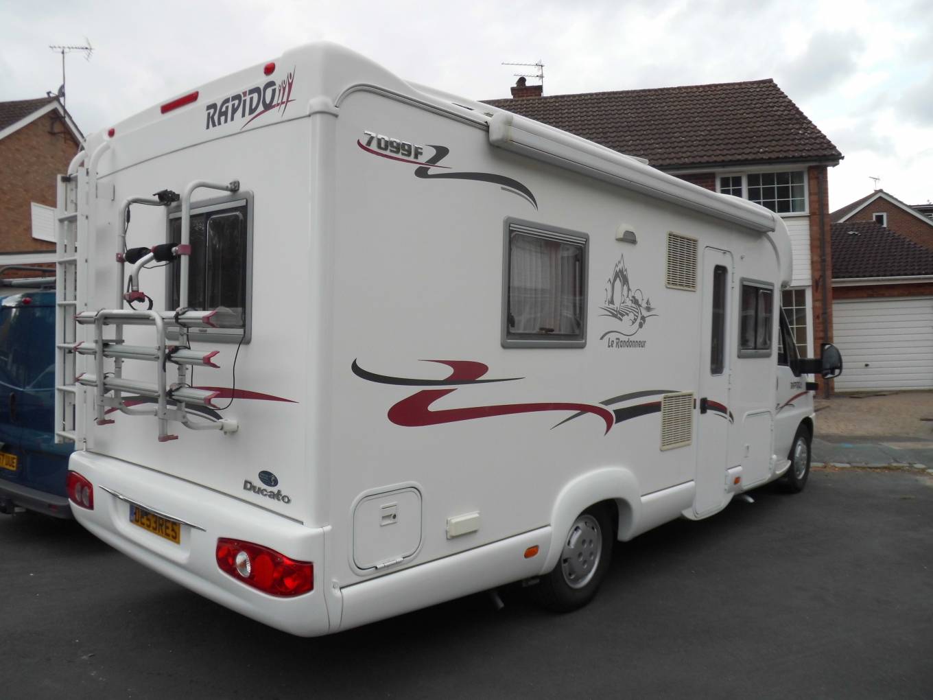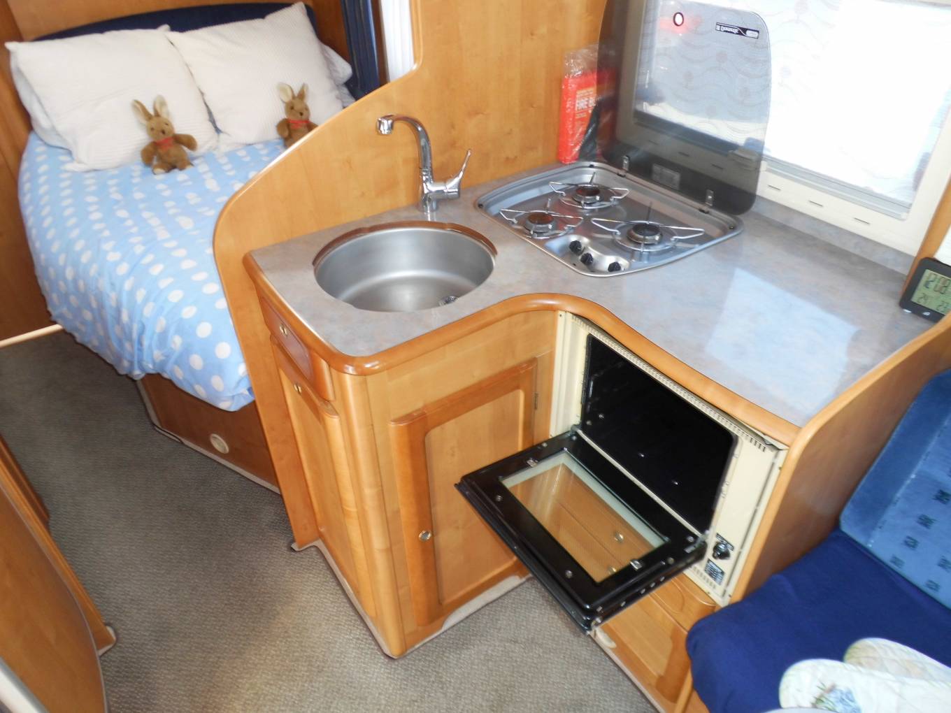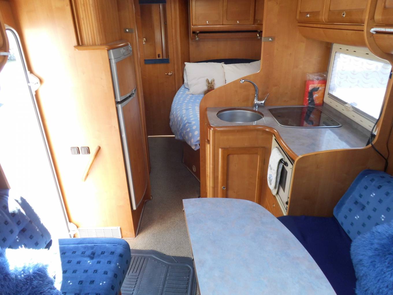 A SIMPLY STUNNING MOTORHOME IN EXCEPTIONAL CONDITION. This lovely motorhome has a very pleasing layout that's easy on the eye and the rich blue upholstery gives it a very stylish finish. At the rear is the bathroom which has a separate shower, sink and toilet. Moving forwards there is a large fixed bed, so no need for the daily chore of bed making with this motorhome. The bedroom area has plenty of storage space and there is a full length cupboard to the right of the bed. Moving on from the bedroom you come to the well designed kitchen which has a Smev oven and grill, 3 gas burners, sink and tap and a fridge freezer. There is plenty of storage space for utensils and ingredients both above and below the kitchen worktop. The lounge has 2 side sofas which sleep 2 singles or it can be made up in to a good size double bed. There is also a generous dining table for eating meals and both the front seats swivel which is perfect when you are entertaining guests or have 4 people onboard. This lovely motorhome is fitted with a reversing camera, a satellite system, and the seller has 2 mobile solar panels available to buy as well. Built on the well renowned Fiat Ducato chassis, this motorhome has a powerful 2.8 litre diesel engine. It has an MOT until April 5th 2019 and has only covered 26640 miles. I CAN OFFER THE BUYER FREE 14 DAY DRIVE AWAY INSURANCE WITH THIS MOTORHOME. For more details or to see a more extensive file of photographs please call me on 07535 155674.