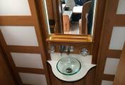 washbasin with mixer tap, a Thetford cassette toilet, a medicine cabinet,