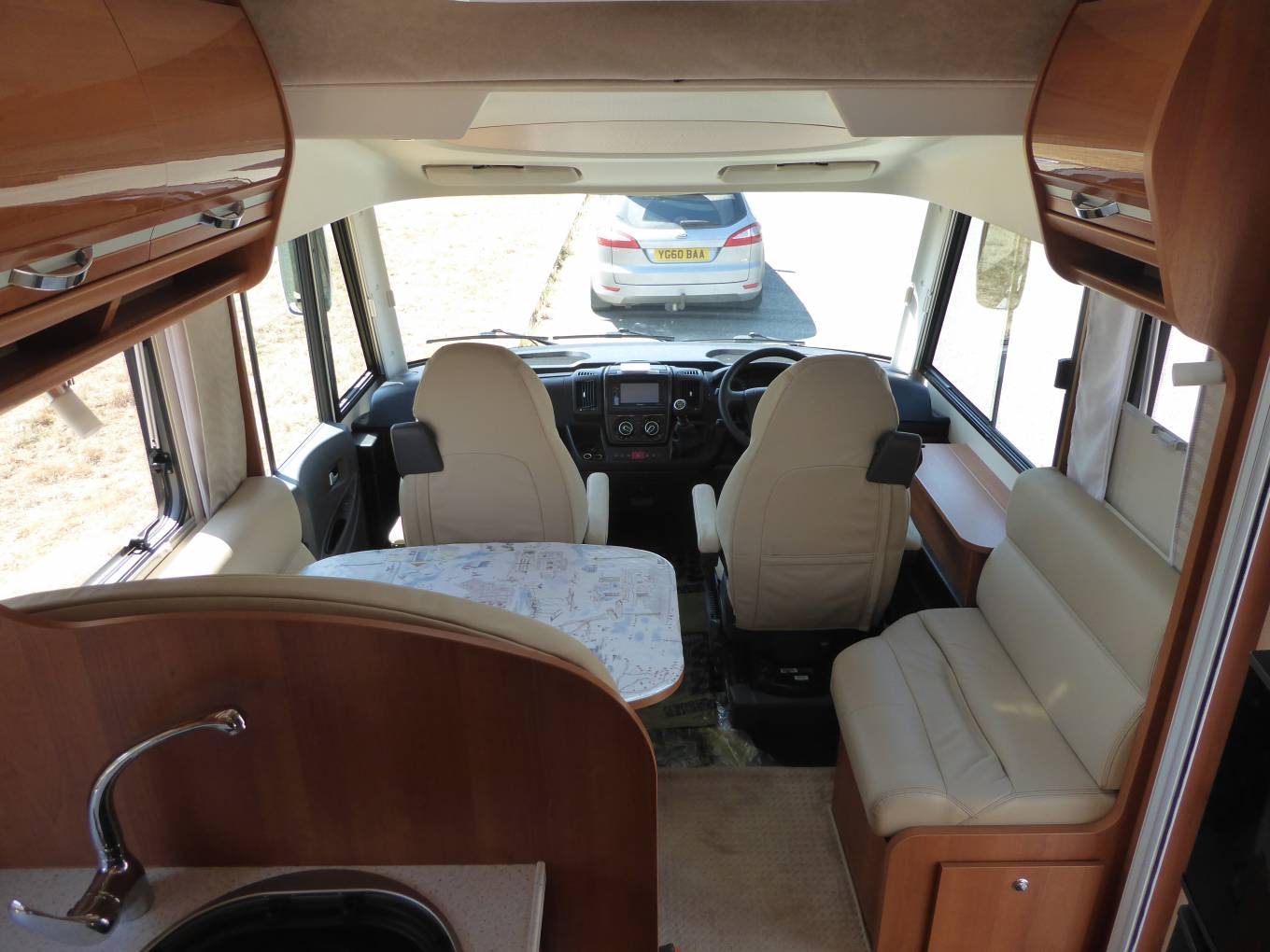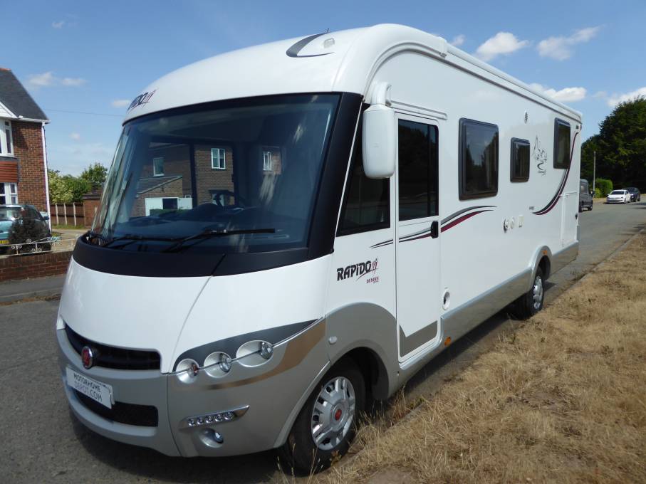 Call with any questions on 01423 609985. Quite simply this is a stunning and immaculate motorhome both inside and out. New these are circa £120,000 without some of the luxuries that this fantastic A class Rapido 891F possesses. The 1st owner lives 4 houses away from the current owner, so that is the confidence that you should have in this motorhome. Registered in March 2014, it has only 7220 miles on the clock, MOT till May 2019, is about to have an oil change, weighs 3650kg and measures 7.37m or 24 feet 2 inches approx. It has a whole host of impressive features externally, the Glamourshield paint protection system, gutter below the roofline to avoid black streaks, reversing camera, superb bodywork and well preserved underneath. The most impressive element will always be that view that can only be enjoyed from being in an A Class motorhome. At the rear is the garage which has variable height given the island bed can be raised or lowered internally to suit the needs of the occupants. In the garage there is hot and cold water and shower attachment. The floor has been reinforced to allow a payload of 300kg in this area; the runners for the bed are spotless. Above the garage is the rear island bed with plentiful storage underneath and around the bed. At the foot of the bed on the nearside is a fully enclosed shower cubicle and on the offside a separate toilet with handbasin, The bedroom can be sealed off from the main habitation area. The kitchen is compact and well equipped with Dometic tower fridge with separate freeze plus cooker with oven, grill, 3 gas burners next to the sink. In the front lounge which has L shape sofa plus travelling seat there are 2 full forward facing seat belts and a table that has a top that can be moved to suit the numbers of people sitting down. Throughout the rich smell of luxurious leather prevails and this is really evidnet in the from Rapido mongrammed seats which are a limited edition seat at a specification above the one normally provided by Rapido. I sat in them and they are truely comfortable and will allow to relax when you want and drive in comfort when on the road. The front seats both swivel, there is cab air con, 6 speed manual gearbox, Multimedia centre including rear camera, cruise control, electric windows and don't forget the view. The overcab bed is effortless to bring down and return to the travelling position. For security it has a Sigma 1 alarm fitted. Please contact the broker to arrange a viewing for this motorohome. Part Exchanges are welcolmed on this vehicle, for further information and photos please call us on 01423 609985 quoting Reference: 16062.