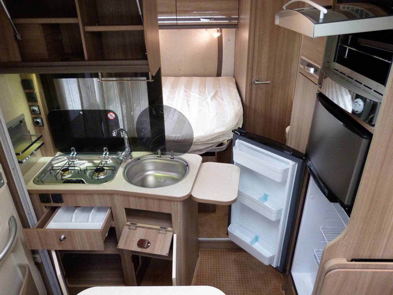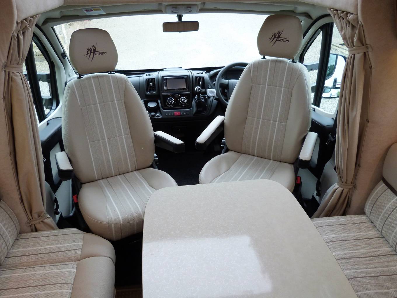 Call with any questions 01423 609985. This 2014 Rapido Le Rondonneur 640, low profile, low mileage, coachbuilt motorhome is in pristine condition inside and outside and has a unique layout, with island bed, mid-section kitchen, forward seating area with 2 demountable seats both with full seatbelts that can convert into an occasional bed and is ideal for couples, with island bed at the rear above the large rear garage. This distinctive motorhome, is built on a Fiat Ducato chassis, is just under 6.5 metres long, has the impressive 2287 cc, 130bhp diesel engine matched to a 6-speed manual transmission, that powers up the hills, sits on the motorway using cruise control and has covered only 7,161 miles. Anyone can drive it, given the overall permissible weight is 3,500kg. Every inch of it, is clean, tidy and in the best condition it could possibly be. The island bed has plenty of storage immediately beneath which can easily be accessed by lifting the frame. The washroom itself has toilet and shower with 2 panel enclosure, the sink is situated outside of the washroom next to the bed, the tap is hidden behind a sliding panel, that has even more storage. The kitchen, that is immediately accessed via the habitation door, covers the full width across the mid-section of the motorhome. It is well equipped with a Dometic oven and grill, with 2 gas burner hob above, next to the sink. There is an extendable work top and opposite a large Dometic fridge with freezer. The front dinette is light, with large windows allowing plenty of natural light to enter. The side facing sofas, can be transformed into 2 forward facing seats and 2 seatbelts and an occasional bed made using the table, which can be fixed in several different positions. Up front, there is cab air conditioning, reverse camera, cruise control, 2 x swivel seats, sunroof, 2 reading lights, Pioneer multimedia centre incl Bluetooth, CD, and radio and for privacy, Remis blinds. Additional features include, awning, satellite entertainment system, gas BBQ point, 2 Gaslow refillable gas bottles, leisure battery and solar panel. A service has been undertaken in April 2021, habitation inspection in May 2021 and the MOT runs until April 2022. The extra pictures show off all its features. Viewing by appointment only near Harrogate, North Yorkshire. Part Exchanges welcomed on this vehicle, for further information and photos please call us on 01423 609985 quoting reference 149791.