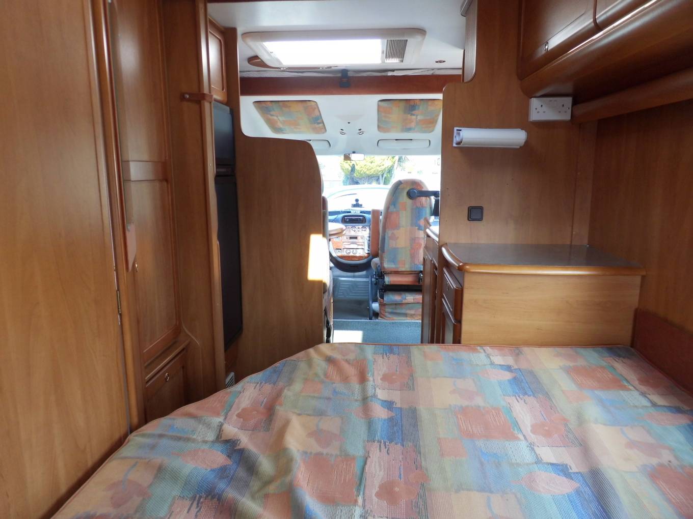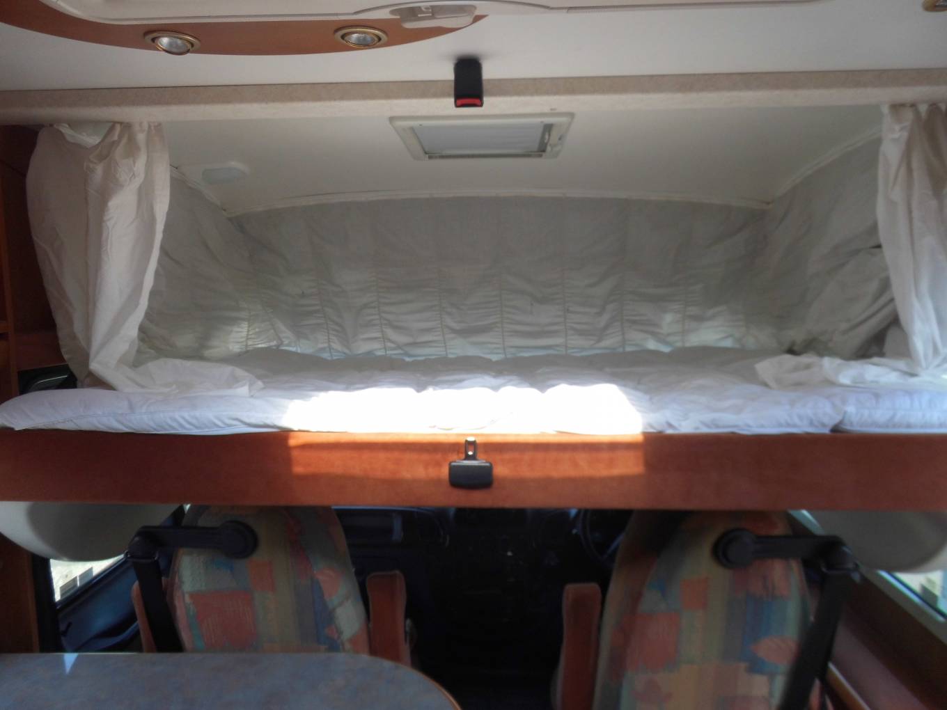 The cab area is enormous, light and airy and provides a fantastic driving experience with excellent all round visibility and this motorhome is a real pleasure to drive. Above the cab is an enormous bed which sleeps 2 adults in real comfort.