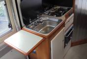 with a 2-burner gas hob, oven/grill, sink with mixer tap, large fridge freezer,