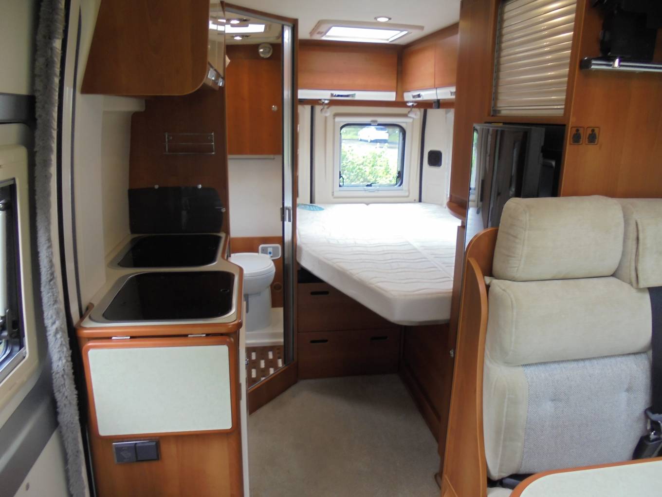 well-planned luxurious motorhome with a large full width French luxury bed in the
