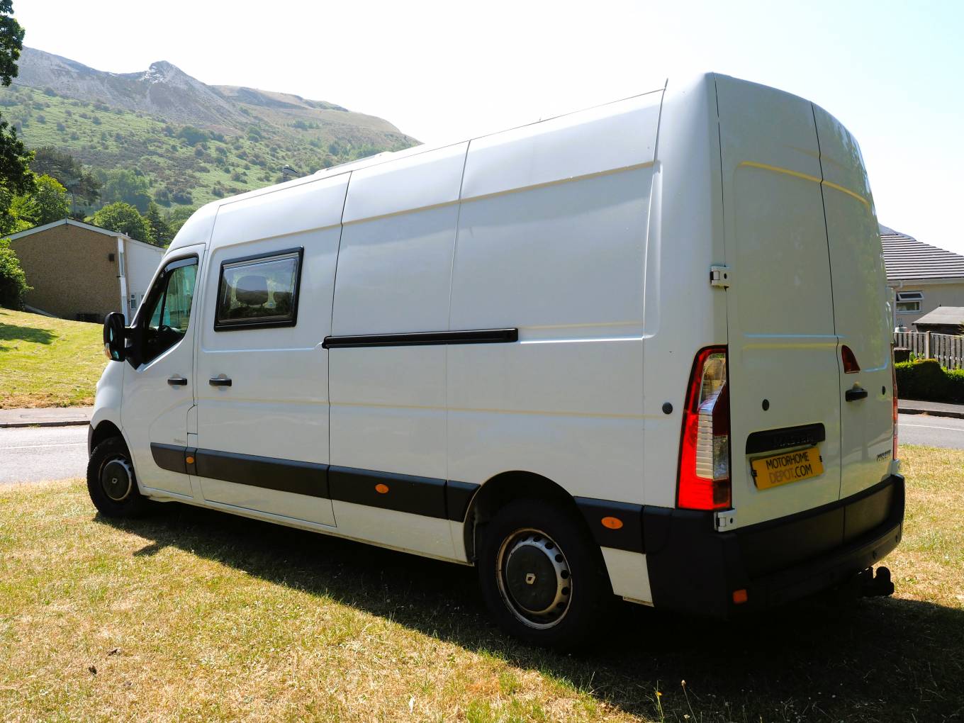 A real pleasure to be able to offer this thoughtful campervan conversion built on the reliable Renault Master LM35 Business DCi. With low miles covered from new this van was a former Dealer demonstrator before being converted into a 4 berth, 5 travel seat vehicle. Finished in white giving a new owner options to personalise with their own vinyl graphics should you wish. The seating is upholstered in a rich burgundy leather gives a feeling of luxury and comfort both up front and in the rear habitation area.