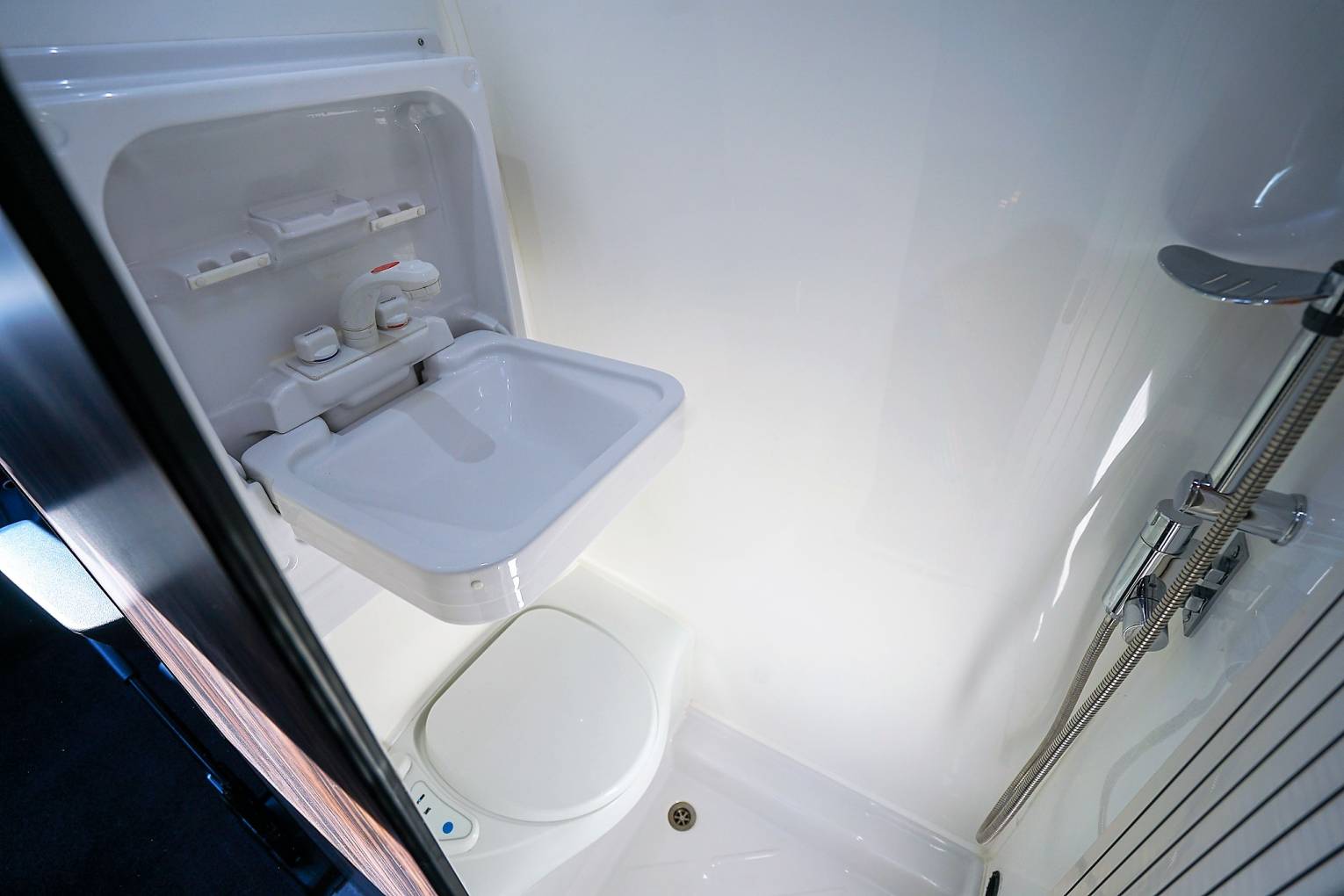 Tambour sliding door to washroom with Thetford Electric flush cassette