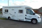A lovely 4 berth motor home with rear fixed bed and 4 seat belts. Built on a Renault Master DCi140 chassis with a 3000 cc diesel engine. It has been graded from a 3.5 tonne payload to 4 tonnes. This also comes with air suspension, a reversing camera and tow bar. It is right hand drive, 6 speed manual gearbox. On entering the motor home through a side door, immediately in front of you is a lovely kitchen area containing a 3 ring gas hob with a glass lid, high level oven and grill, extractor fan, a large fridge freezer and a sink/worktop area and microwave. Moving to the front of the motor home is a spacious lounge area consisting of an L shaped sofas and a removable dining table which also converts into a double bed, and a further sofa opposite. Both of the front seats swivel making it a perfect socialising area. One of the sofas is front facing with two 3 point seat belts. Moving to the back of the motor home there is a fixed double french bed with ample high level storage cupboards and wardrobe. To the right of the bed is a spacious light and modern washroom, consisting of toilet, high level white gloss mirror vanity units and stainless steel washbasin with black worktops. The washroom has a skylight and LED lighting and is large enough to double as a dressing room.. There is no shower in the washroom but there is an outside shower point. Each window has fly screens, blackout blinds, curtains and voile curtains. A curtain separates the cab from the habitation area. There is ample LED lighting throughout the motor home making it cost effective and light. The motor homes comes with cab and habitation air conditioning as well as airflow heating. The flooring has a grey carpet which is removable revealing a vinyl wood effect flooring, perfect for pets. There is a large sunroof in the centre of the habitation area. It is a lovely example of a motor home suitable for families.