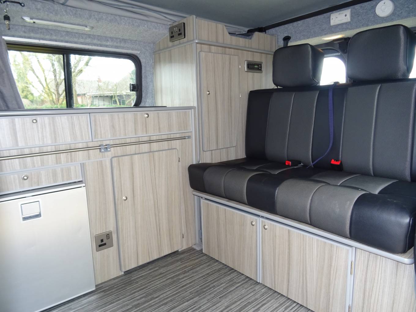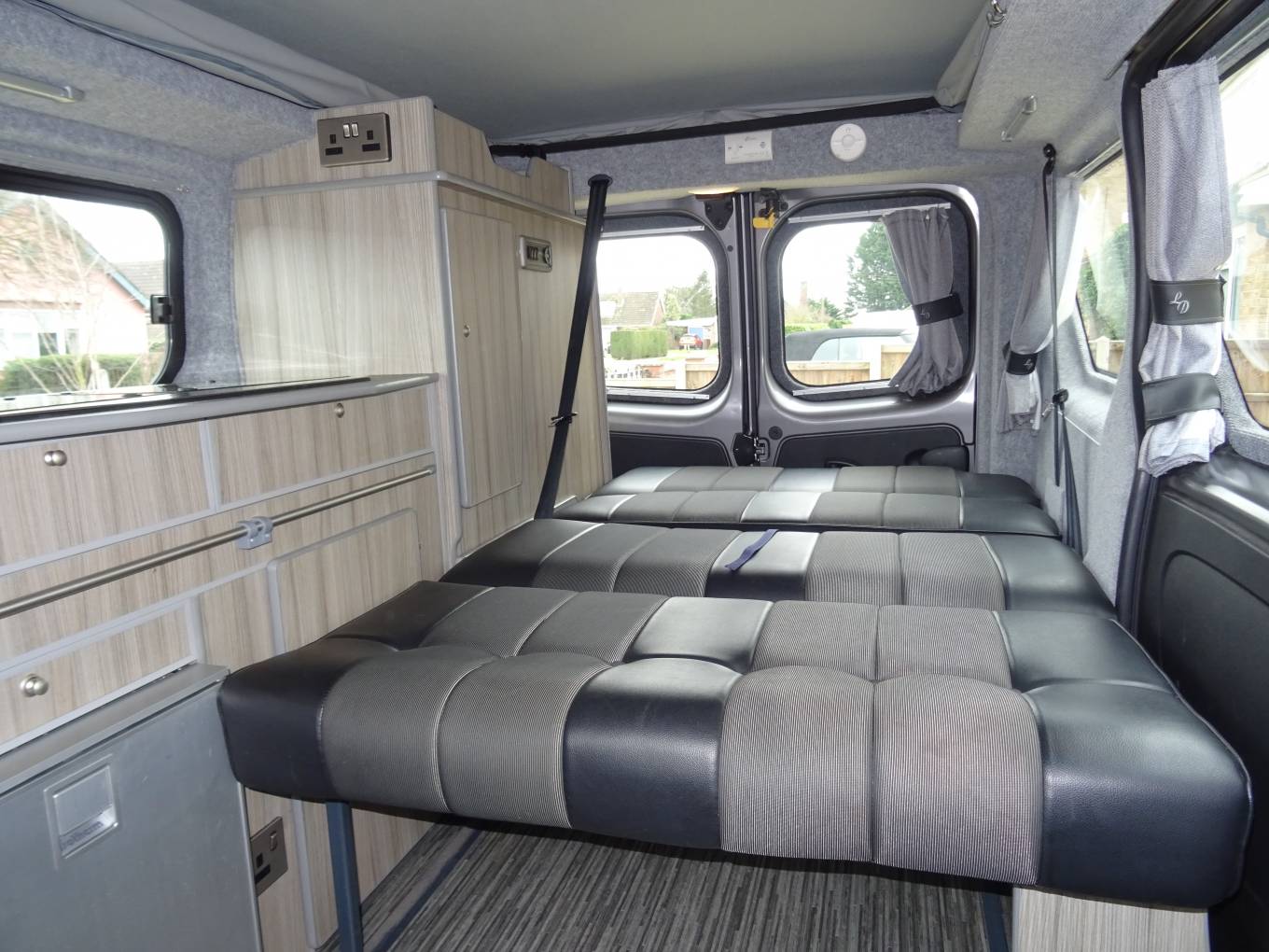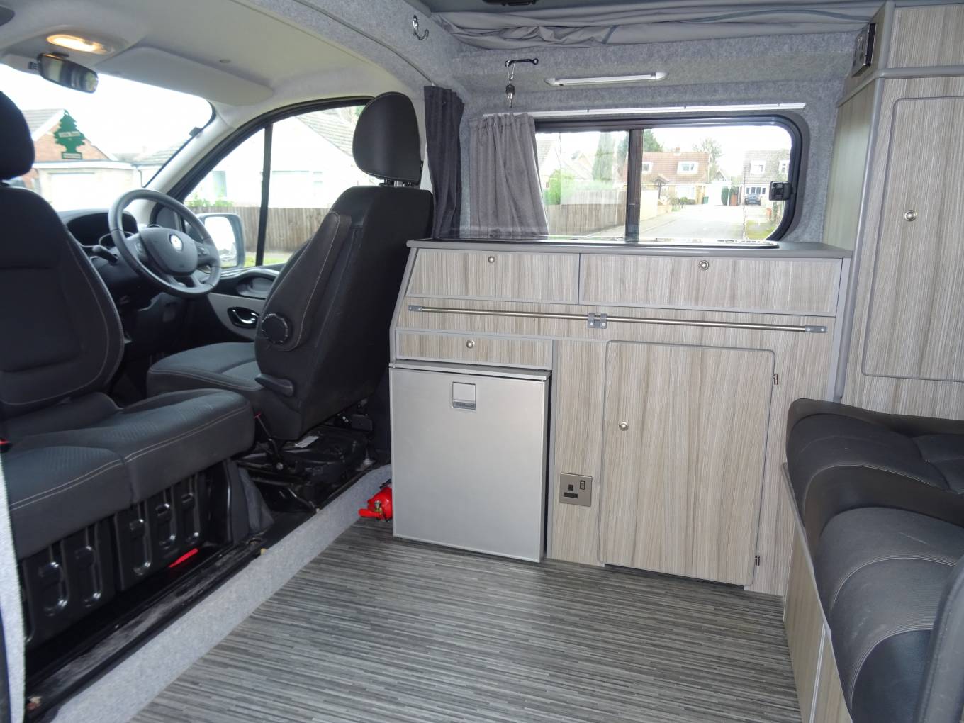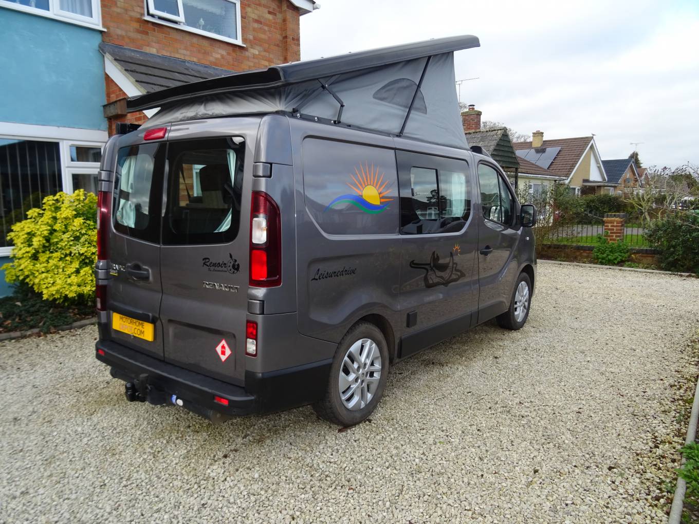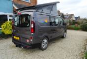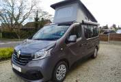 We're pleased to offer this very nice Renault Renoir Pop Top with low mileage conversion by Leisuredrive, This camper has a very good quality finish inside. On entering the side door you have a kitchen area with sink, 2 gas rings, fridge freezer, pumped water and good storage space. The front double seat swivels around making the central seating area very comfortable and a good socialising space. To the back, the rear seat with 2 seat belts makes into a good size double bed and storage underneath. The pop up roof can sleep 2 comfortably but you would need to purchase the bunk bed fitting as this hasn't been needed. Other great features cab aircon, DAB radio, sat nav, auto lighting, alloy wheels, fiamma awning, curtains, and tow bar that you can fit a bike rack to. This camper is in great condition and has been looked after well. MOT expires 30/12/2022
