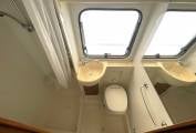 cubicle, Thetford cassette toilet, and vanity hand wash basin.