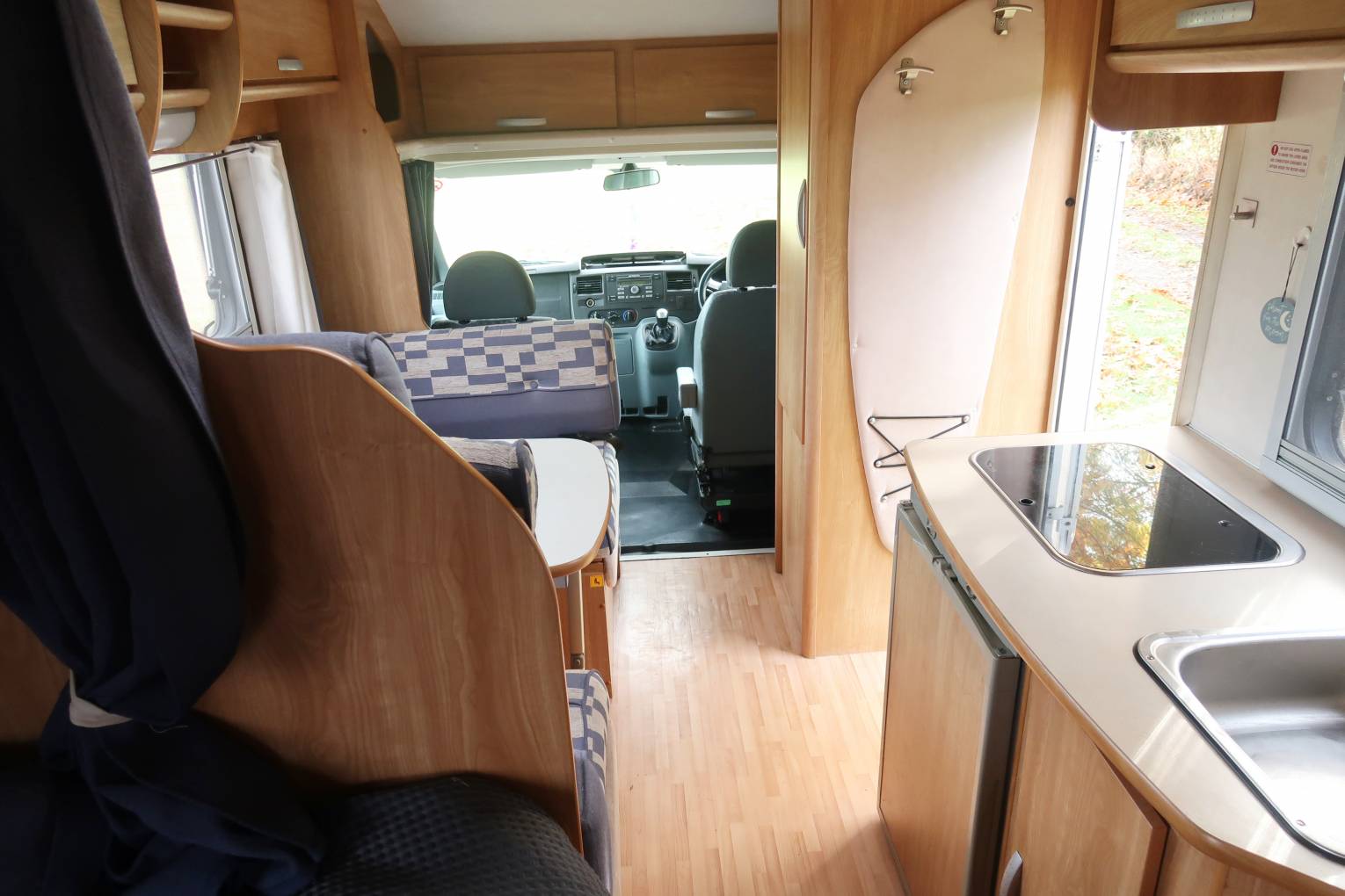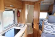 In the cab you have air conditioning, driver and passenger airbags, a radio cd player, cruise control, steering wheel mounted controls, cab privacy curtains and power windows. Being based on a Ford Transit chassis you can rest assured that the ride is extremely comfortable so long journeys can be enjoyed. This motorhome is fitted with a Gaslow refillable bottle and a tow bar. At only 6.48 metres long she offers plenty of living space but in a size that is still easy to drive and park and at 3500 kg in weight she can be driven on a standard driving licence.