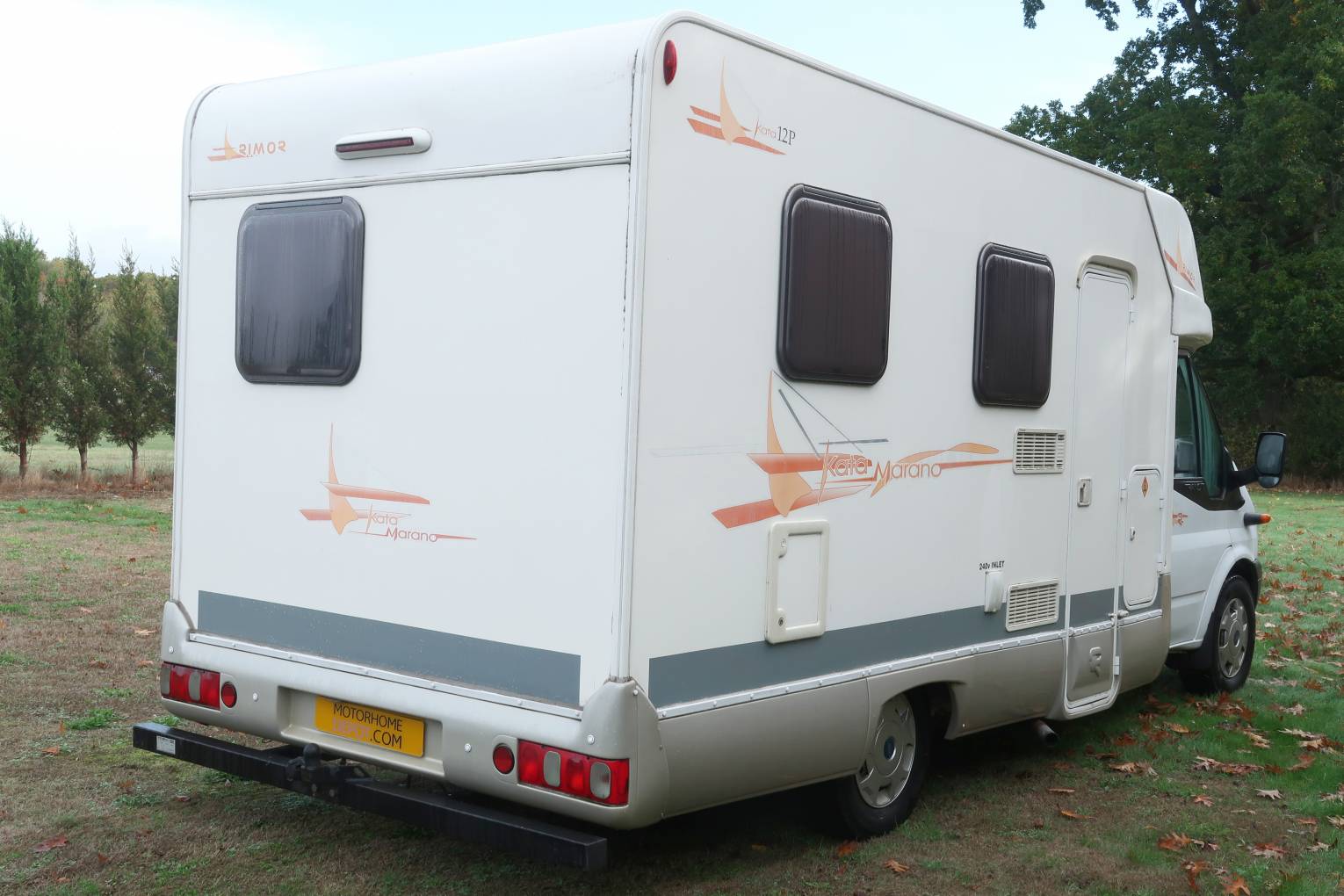 This low profile Rimor Katamarano 4 berth motorhome is fitted with 4 seat belts and 2 lap belts and it will make a fantastic starter motorhome for a couple, or for a family of 4 who want to experience the fun and freedom that motorhome holidays bring. Based on the world renowned Ford Transit chassis and powered by the superb 2.2 litre engine this motorhome will cruise on motorways and climb hills with ease.