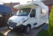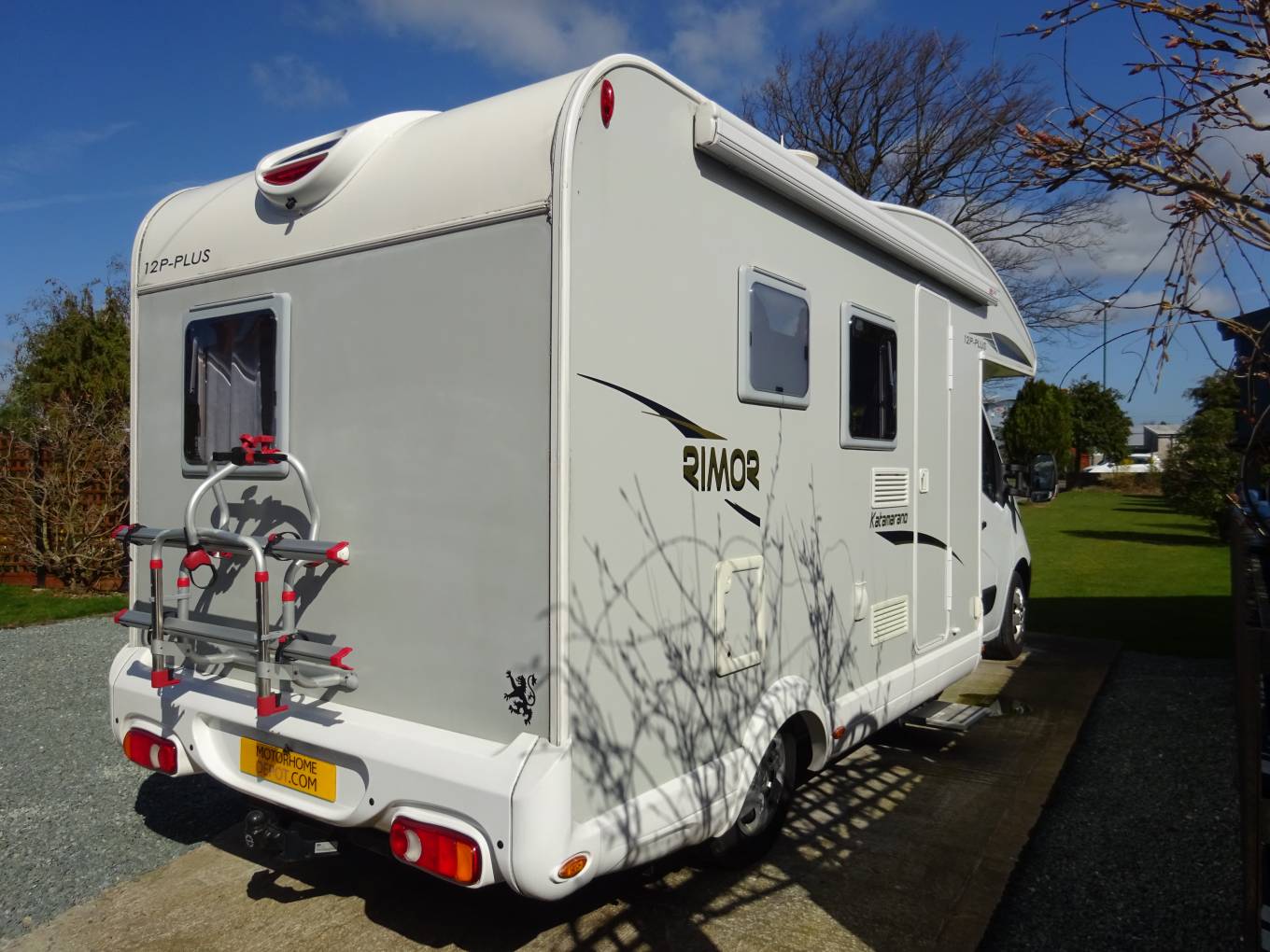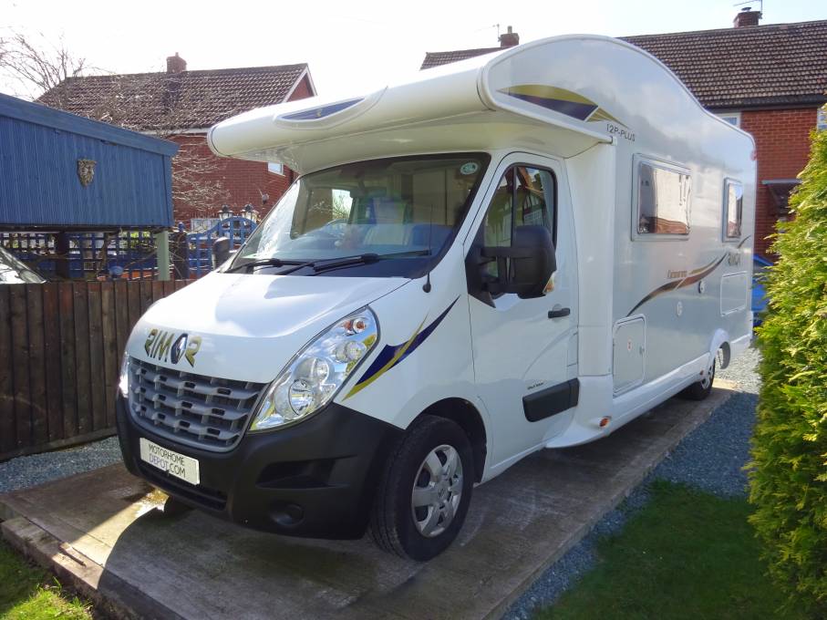 We present for sale this very smart 2013 Rimor Katamarano 12P Plus. A low profile coachbuilt motorhome based on the Renault Master. It has the 2.3 ltr engine matched to an AUTOMATIC gearbox. It has 6 berths and 6 seat belts. The beds comprise of a fixed rear bed, double. A double bed made up in the dinette area and an electric drop down double bed. The drop down bed is accessed via a ladder that stores on the bed when not in use. The seat belts are driver and passenger then 2 forward facing 3 point belts and 2 rear facing lapstraps in the lounge. In very clean condition all round. The kitchen has a three burner gas hob, a sink with mixer tap then underneath is a 3 way fridge and a drawer and cupboard. A microwave with a grille is mounted in the cupboard above the worktop. Washroom has sink with mixer tap, upper storage cupboards, a vanity mirror also towel rail a toilet roll holder. The shower area is separated from the toilet area by a curtain. Truma heating is gas only. Status aerial fitted, TV included.