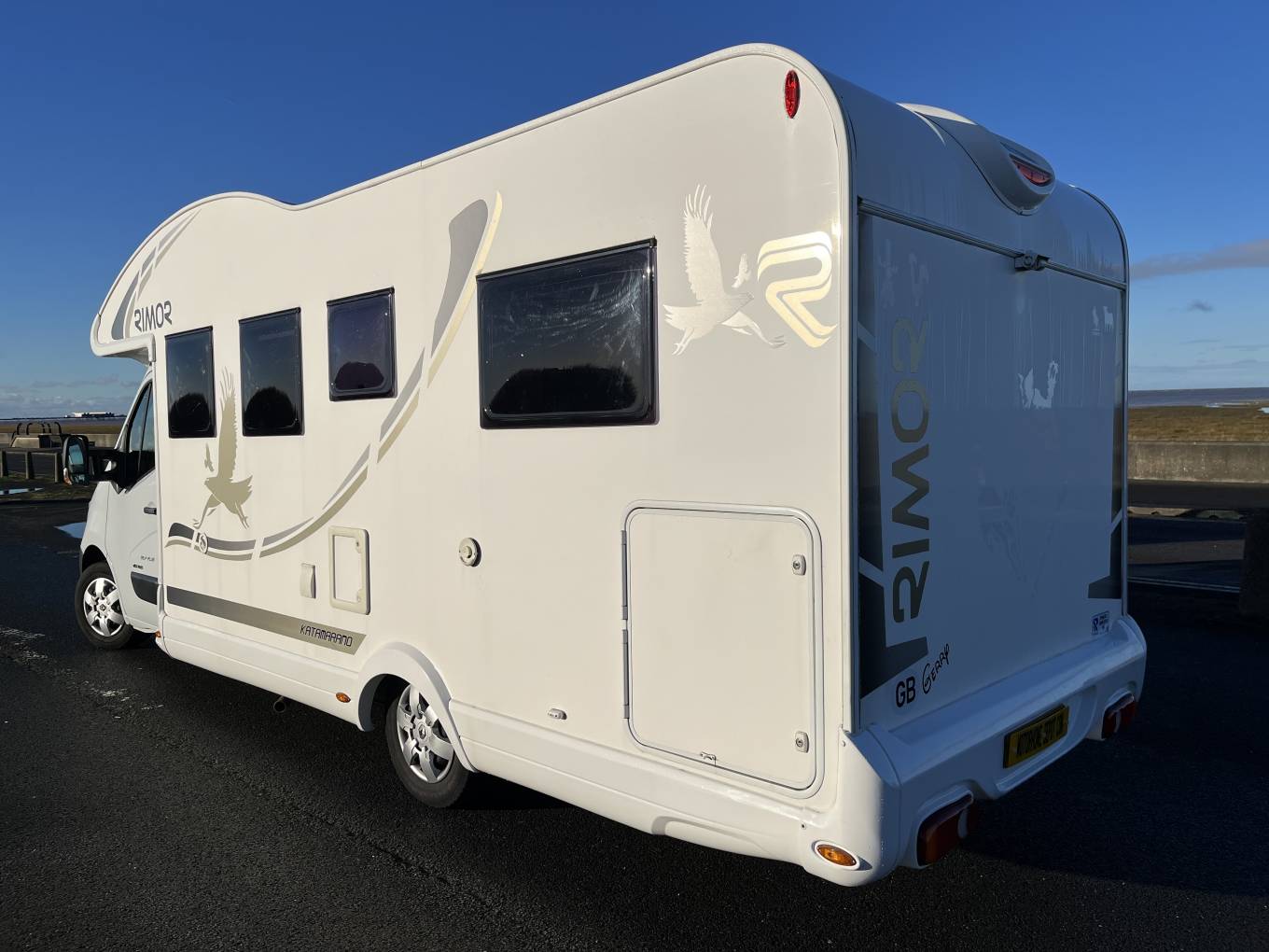 Rimor Katamarano 95p Plus, 5 Berth Motorhome with 2 Fixed Single Beds and Electric Drop Down Bed. This motorhome was first registered November 2015, it has been well maintained including Full Habitation Check and has one previous owner. At the rear is the bedroom with 2 fixed single beds and under this is a good sized garage with plenty of storage. Next to the bedroom is the bathroom area with separate shower compartment and in the centre of the van there is a well equipped kitchen including a microwave. At the front is the lounge with adjustable table, captains seats and over head there is an Electric Drop Down Double Bed. It comes with 5 Seat Belts, Cab Air Con, Cruise Control, Twin Rear Camera, Gas Refill System, Blown Air Heating, TV, Canopy Awning, Eletric Step, BBQ Point and Solar Panel. It also comes with Alarm, Security Tracking and 2 sets of keys. Available for viewing by appointment in Southport, call for more photos, videos and information.
