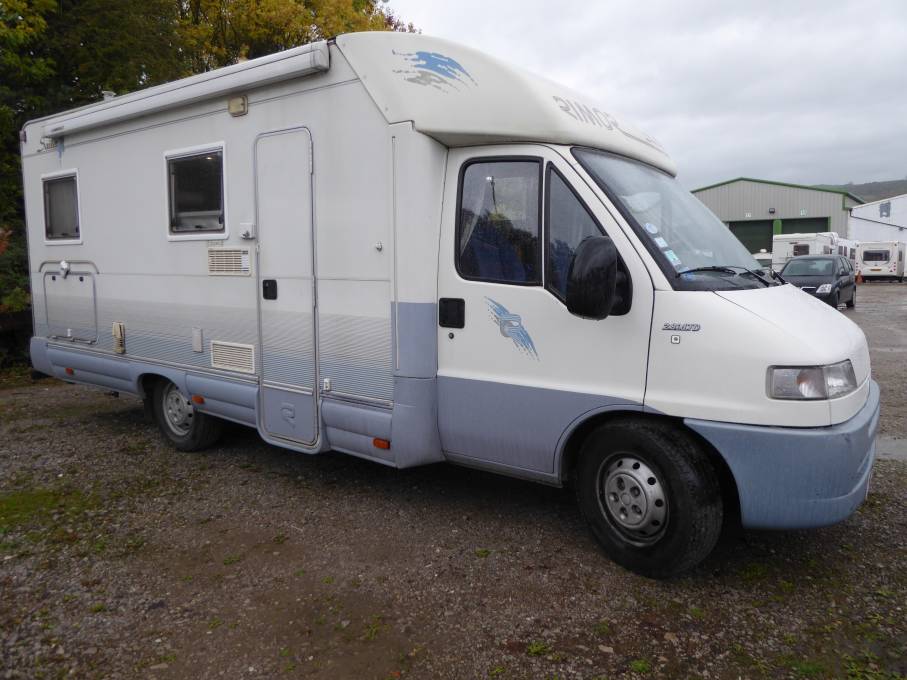 Call with any questions on 01423 609985. This is a Rimor Sailer 545 first registered in September 2000 and then registered in the UK in November 2015, with only 1 former owner. The first owner was in France and the current owner has spent 3-6 months abroad since purchase; the kms travelled is 148,120 or 92,000 miles approx. It is a left-hand drive, low profile coachbuilt motorhome with the powerful Fiat 2800cc engine, built on the Fiat Ducato chassis and weighs 3500kg. Externally it has a tow bar with 2 hook up points, access to external lockers, a large space underneath the rear bed which is ideal for storage, an awning and 2 spare French headlights; it is currently running with UK headlights. It benefits from 2 leisure batteries powered by a 110-watt solar panel. Internally it has been set up for the current owner, with a rear transverse bed measuring 3ft x 6ft 9inches but this could be extended to a double bed measuring approximately 4ft in width and there is plenty of cupboard space around in this area. In the washroom there is a toilet, sink and shower with curtain. Opposite is the kitchen area which includes a stove with 3 gas burners, sink, fridge freezer and forward of this the owner has installed a gas oven. In the dinette area there are 2 forward facing seats with full seatbelts which are not shown in the pictures but will be refitted. Upfront the passenger seat swivels and the upholstery on both front seats is in very good condition, there is a radio/CD player and a 5-speed manual gearbox. The chassis and underneath is all in very good condition and comes with a long MOT lasting until October 2019, the cambelt was changed in October 2017. Its has silver screens for the front internal and external plus a vehicle cover which will cover approximately half of the overall vehicle. This will suit someone who is looking to spend a lot of time travelling the continent as there is plenty of internal space. It is available to see near Skipton in North Yorkshire and should be viewed at the earliest opportunity.Part Exchanges welcomed on this vehicle, for further information and photos please call us on 01423 609985 quoting Reference 82944.