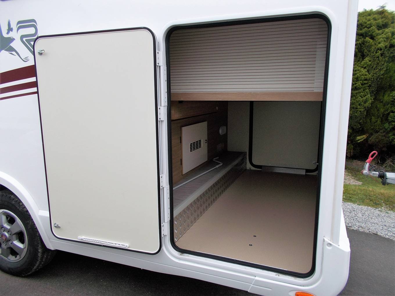 The 69p Plus offers a height adjustable island bed over a very large garage to the rear.