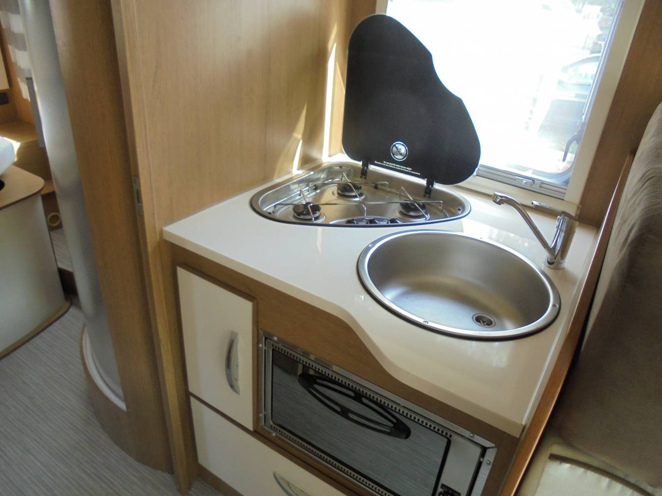 The kitchen has a large fridge freezer, 3 burner hob, oven and grill. Whilst the spacious front dinette offers a comfortable lounge, dining area, all with modern LED lighting.