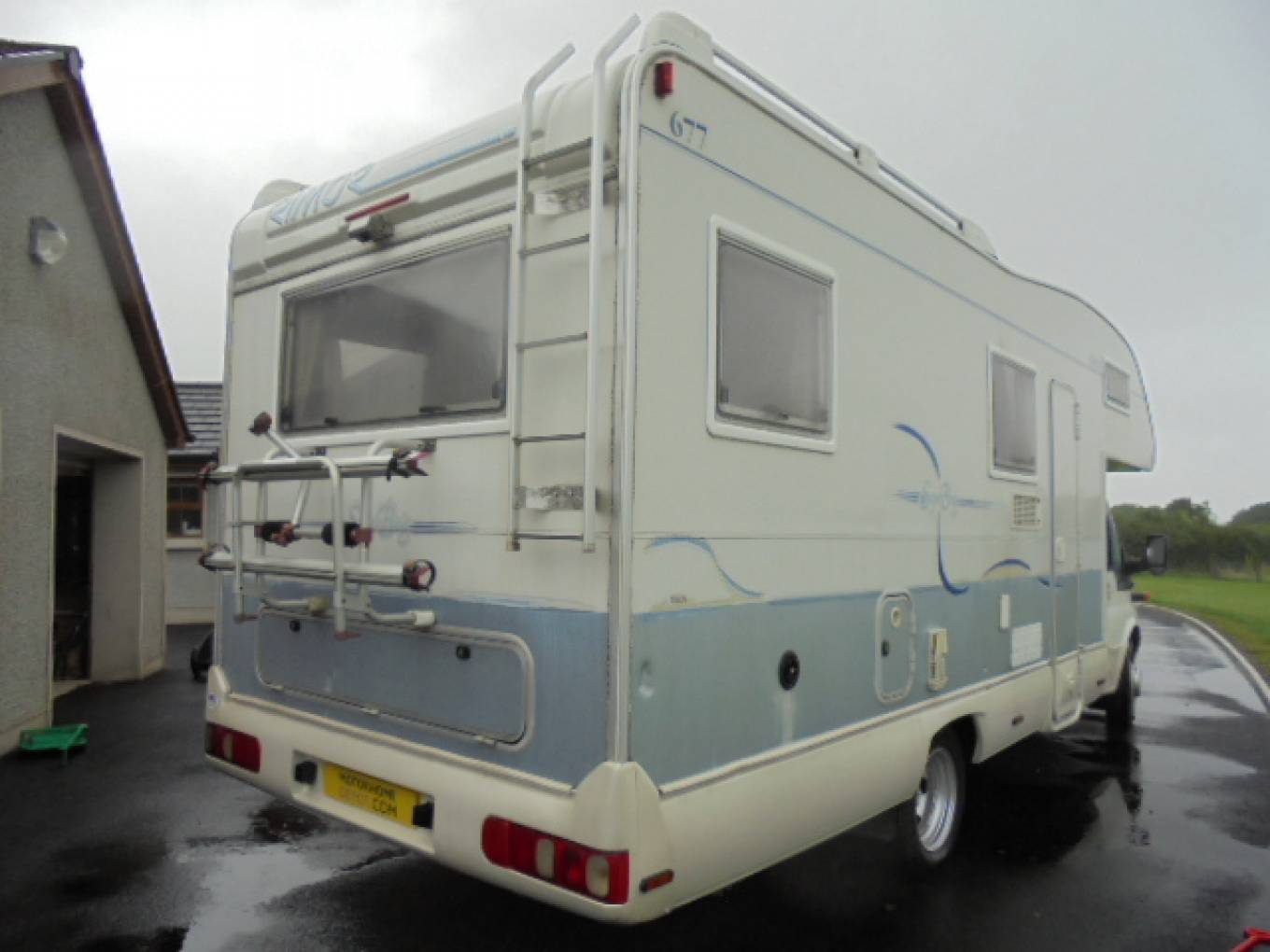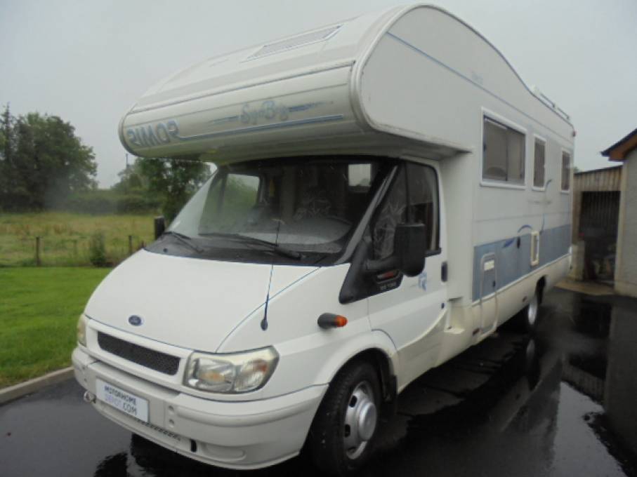 2003 Rimor Superbrig 677 6 Berth Motorhome For Sale. Left Hand Drive. One owner from new. With 6 travelling seatbelts mileage at moment is 89772. Based on a Ford Transit chassis with a 2.4L engine and 5 speed manual transmission, approximate length is 8.5m, width 2.2m and it has a max weight of 3500kg. Above the cab is a large double bed with other sleeping arrangements provided by converting the central dinette to a double and the rear lounge also converts to a large double.The kitchen is fully equipped with sink, 3 burner hob and 3 way fridge freezer. Washroom has WHB, swivel cassette toilet and a separate shower with shower curtain. The centre dinette seats 4 people comfortably while the rear U-shaped lounge allows up to 6 persons. Extras include Habitation Air Con, on board generator, 3 bike rack, luton ladder, roof rails and ramps. Storage good throughout. Needs some TLC on the outside. Motorhome will come with full MOT. For more information please call Mark on 07715220807. FINANCE AVAILABLE SUBJECT TO STATUS. PART EXCHANGE CONSIDERED. Motorhome located in Derrylin Co Fermanagh. LOW COST DELIVERY TO THE UK MAINLAND